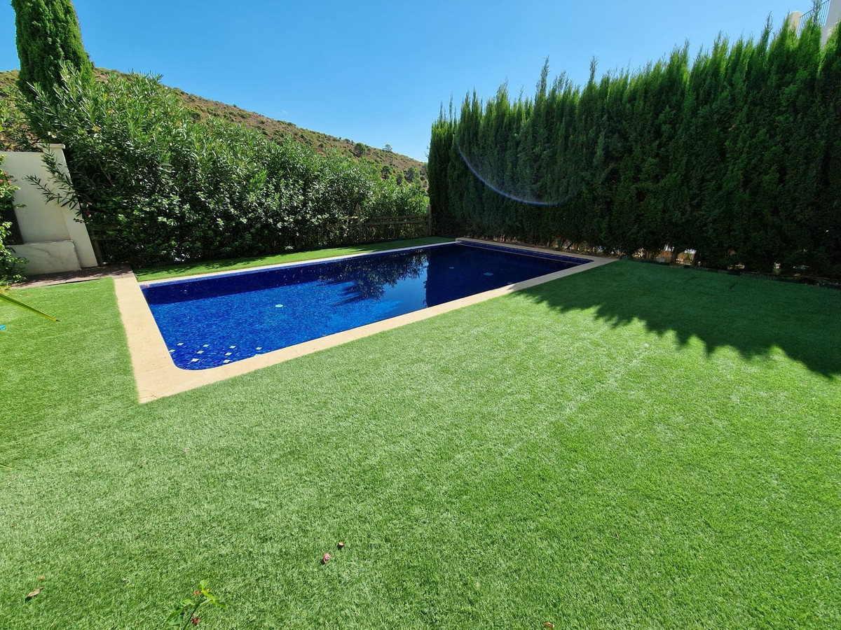 A large property of 492 m2 built, of which 130m2 are terraces, it has four levels and delivers panoramic views to the sea. Outside, there is a garden with mature palm trees, grass areas and swimming pool. Plenty of terrace areas to enjoy the Mediterranean climate also and plenty of large windows to flood the property with light.