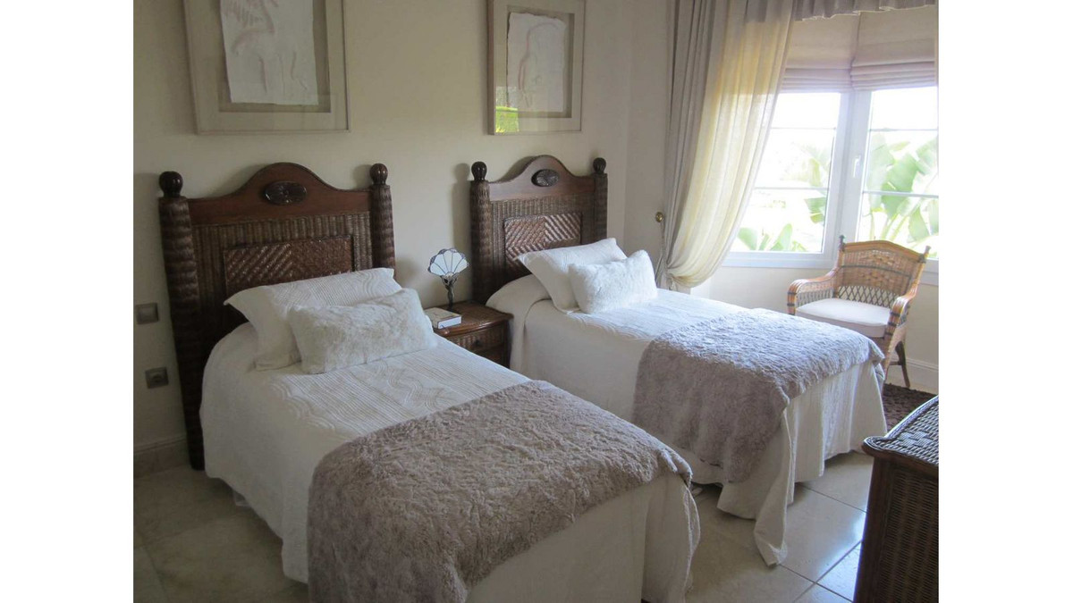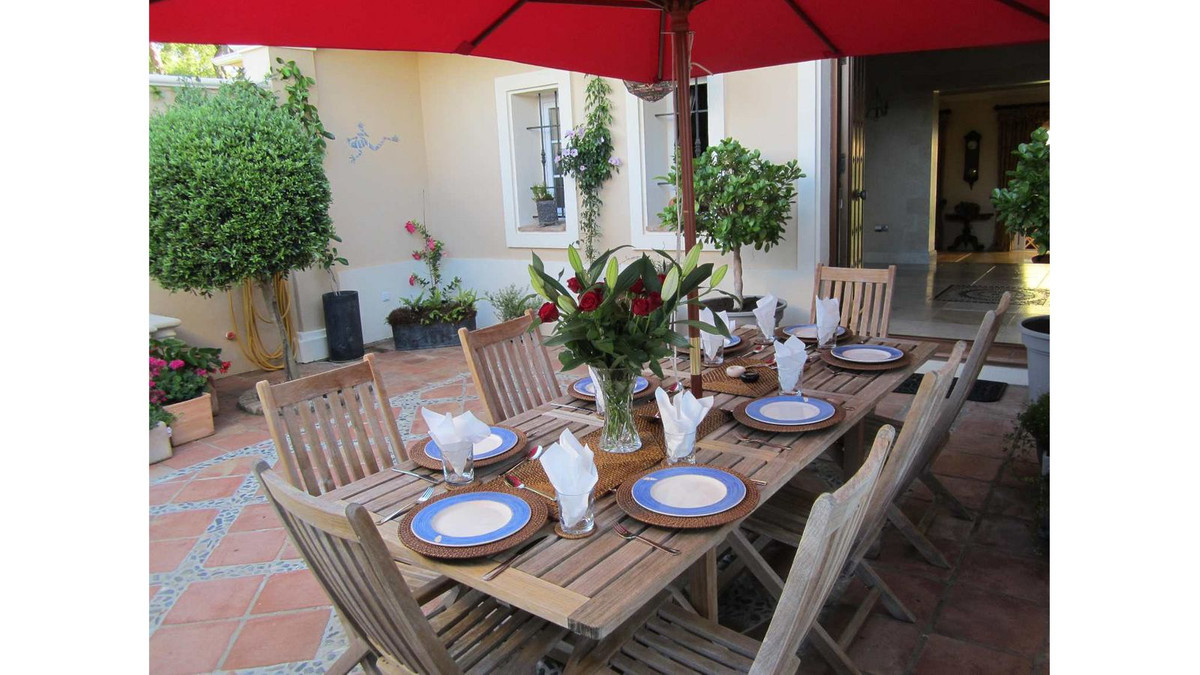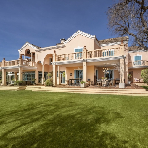 San Roque Golf : Stunning villa located in the prestigious San Roque Club. Located on the first hole of the "Old Course" with beautiful views over the "New course" towards the sea. Built in 1999 but completely upgraded in 2005. One of the many high end features is the swimming pool complex with cascading falls and jacuzzi. Beautiful entrance hall leading to a large sunken lounge, seperate family room make this the perfect villa.