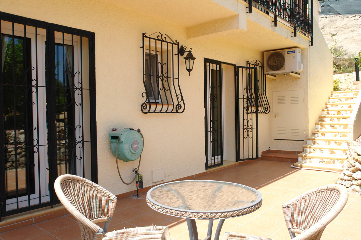 Further details: Air conditioning (hot/cold), fire place, double glazing/grills, hot sanitary water by gas (Vaillant), covered terrace with awnings giving extra protection against the wind too, internet by fibre optic possible, irrigation system, garden shed.