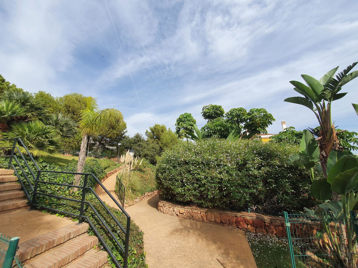 It is a 2 bedrooms and 2 bathrooms apartment with a completly equipped kitchen, an ample living room with possibility to extend to the big terrace. The private garden offers a nice space with beautiful views and possibility to build a splash pool, even if you have large communal pool.