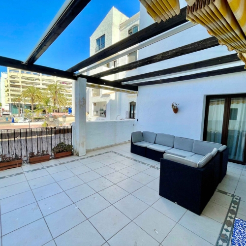 This south facing apartment is located in the heart of Puerto Banus, the famous marina of Marbella. It was recently completely renovated and tastefully decorated.
