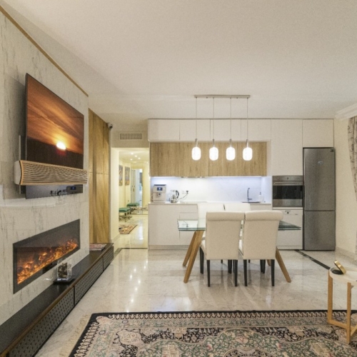 As you enter the property you will get the feeling of quality and spaciousness, from the entrance hall opens the fully equipped kitchen and the spacious living room with open fireplace, dining area and the terrace overlooking the Mediterranean Sea. 2 bedrooms with orientation to the south (sunlight for most part of the day), 2 bathrooms, master en-suite and small French balcony. The third bedroom with en-suite bathroom is located on the north side of the apartment. All bathrooms have been renovated to very high standards. The price includes a place in the underground garage.