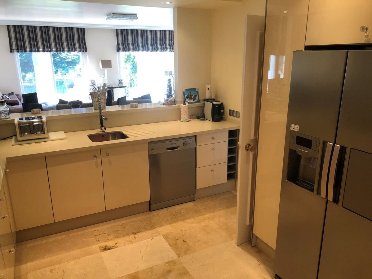 The property itself is located in a quiet cul-de-sac and has a private garden and open views from the upstairs terrace, across the community gardens. The interior of the property is inverted, such that the bedrooms and bathrooms are on the ground floor, with the living room, dining room and kitchen located upstairs, to take advantage of the lovely views of the community garden from the upstairs of the property. The villa has been reformed to a high standard, with a semi open plan kitchen, which has a breakfast bar and serving area directly adjacent to the living room and a separate dining room, which could easily be converted in to a 4th bedroom, if required. The 3 current bedrooms are all spacious doubles and all en-suite, with the master bedroom being particularly spacious and with direct access to the garden. There is a private gated parking space outside, and as the property is in a quite cul-de-sac, there is always ample parking available in the street.