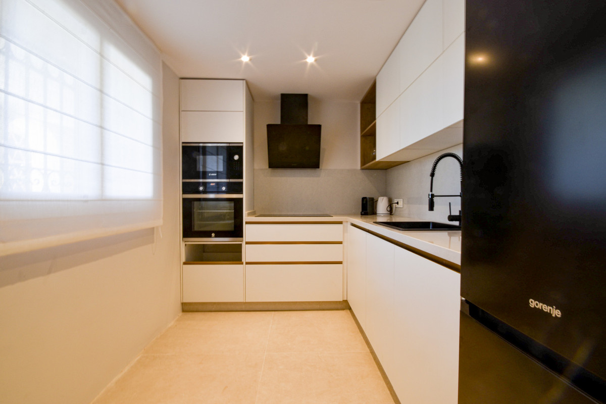 The kitchen is fully equipped with the best appliances, induction hob, refrigerator, oven, microwave, dishwasher, Nespresso coffee machine, toaster, kettle, etc. It has also been equipped with cutlery, crockery, glassware and kitchenware.