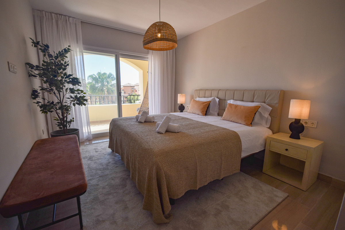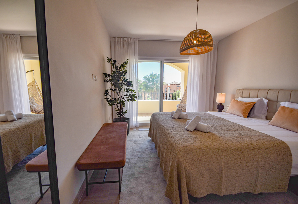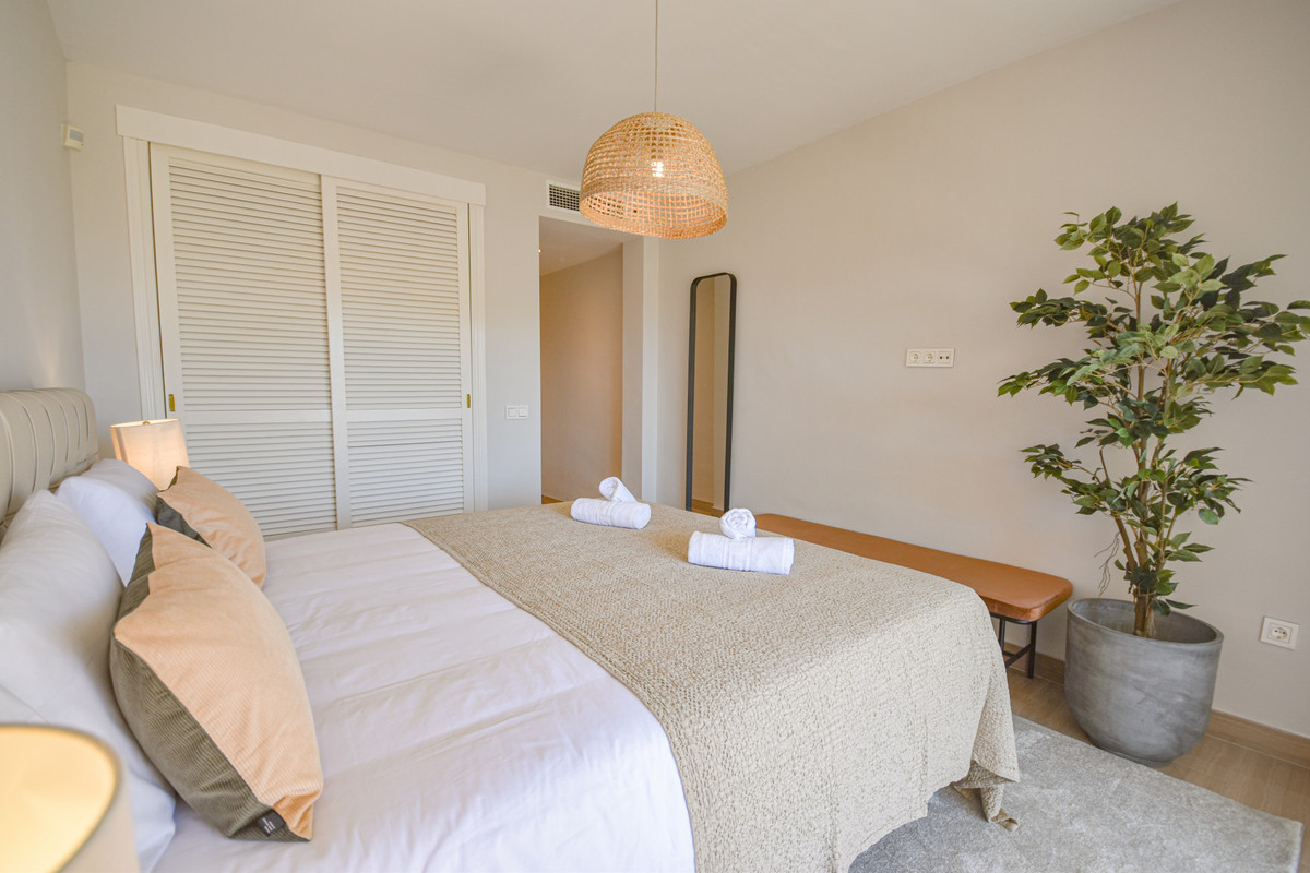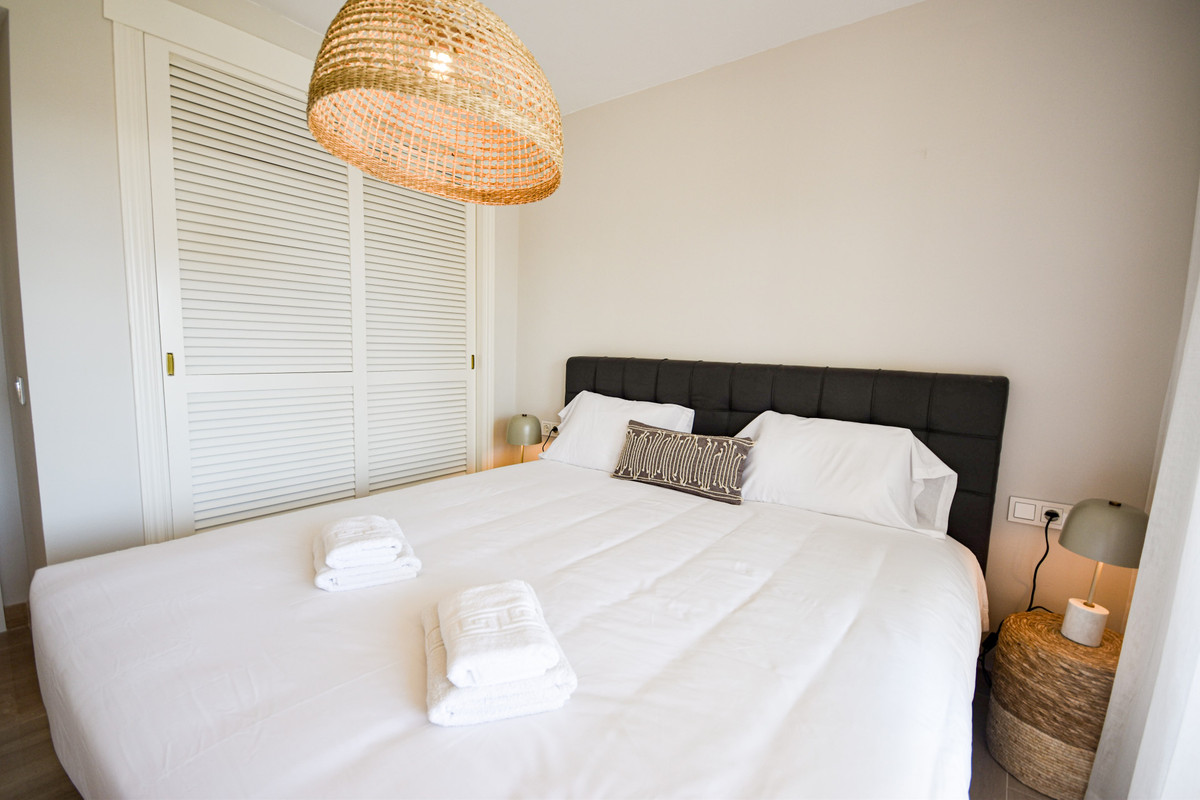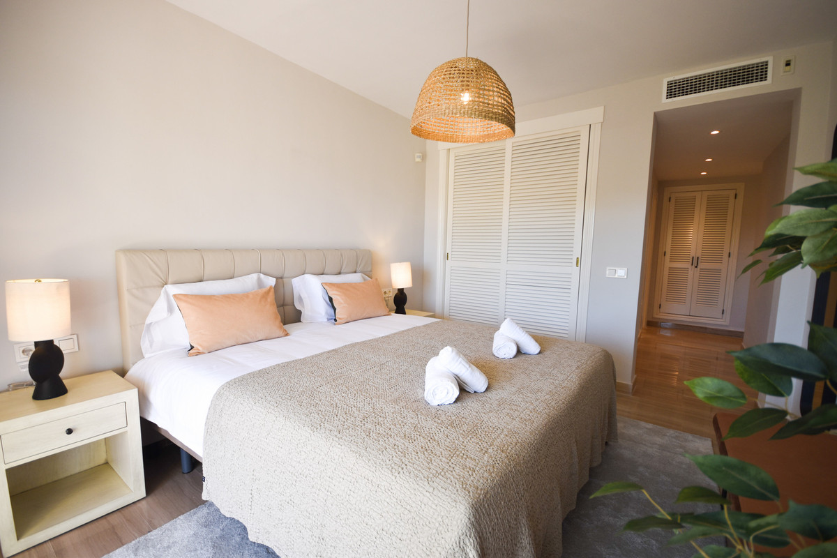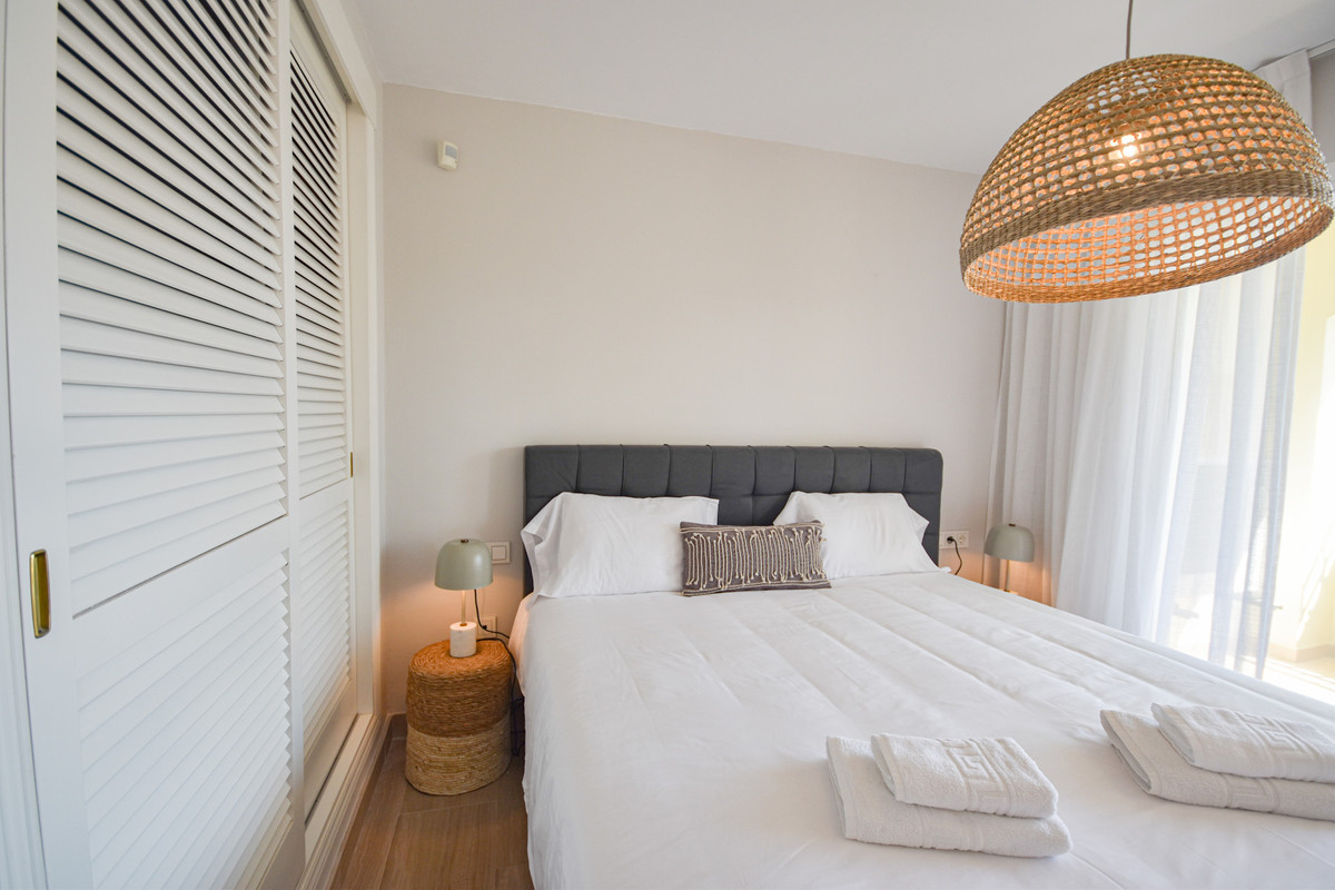 The two bedrooms are equipped with a double bed of 1.80 m and direct access to the terrace. The master bedroom is en-suite, with a walk-in shower and double sink.