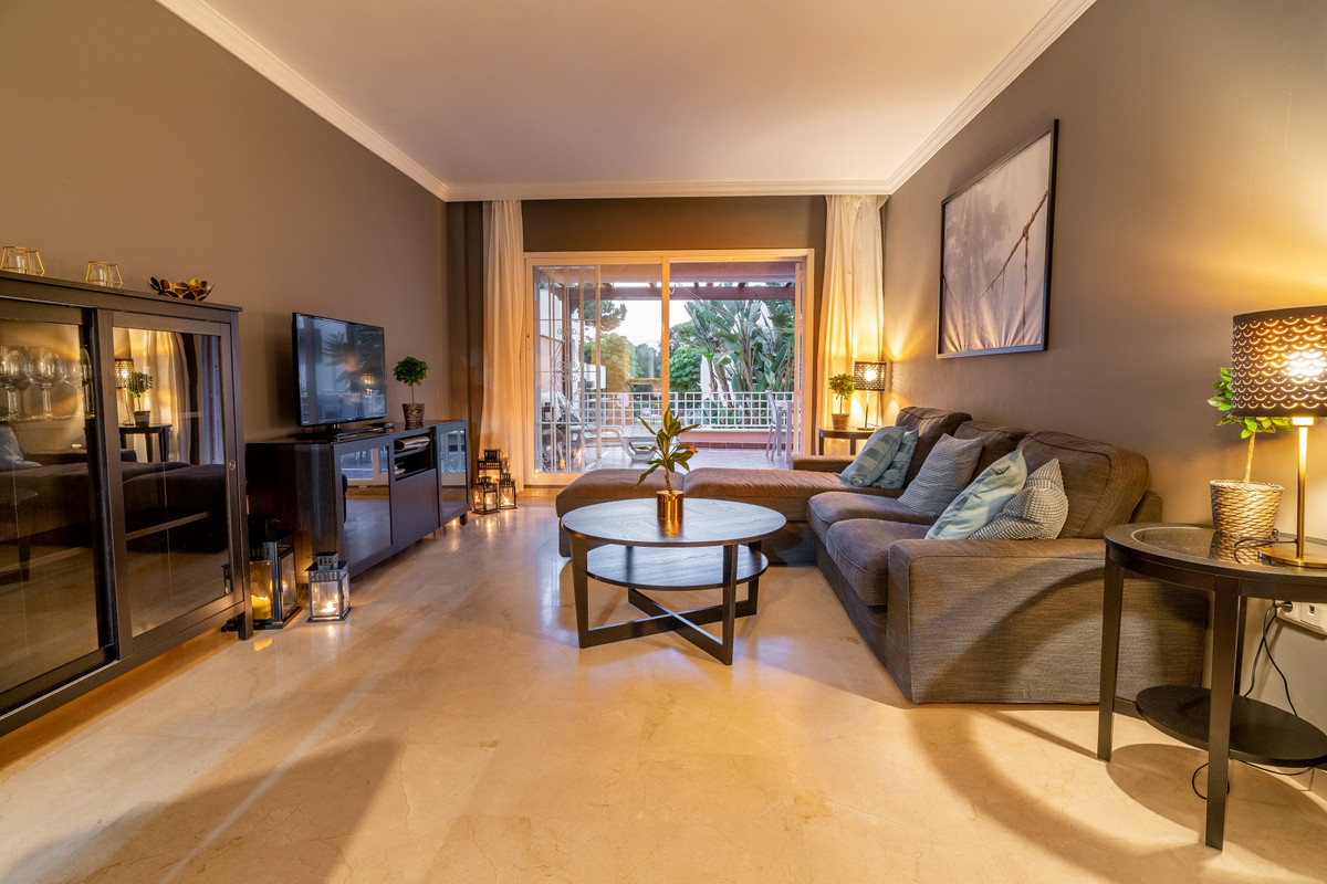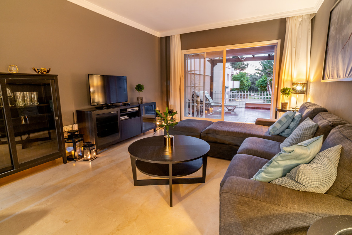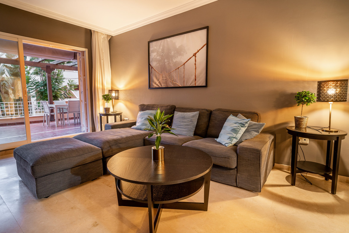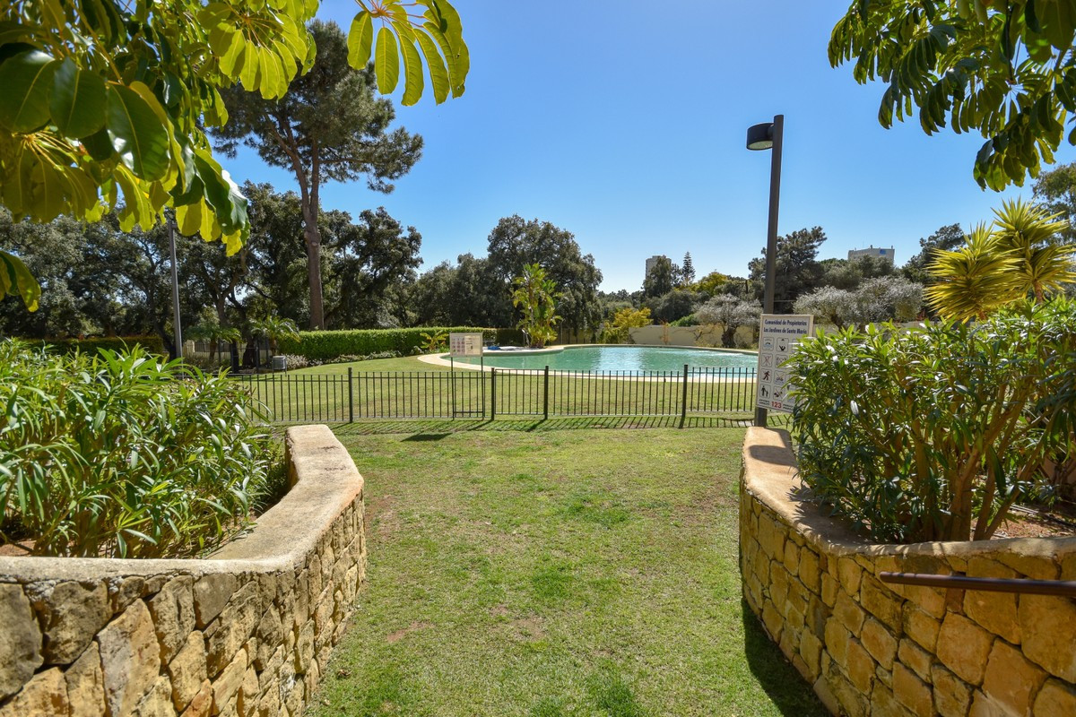 This ground floor apartment decorated with great detail is located in the Los Jardines de Santa Maria Golf urbanization, in the Elviria area, a very quiet place where you can relax and close to all services, just 500 meters from the center commercial area of Elviria, where you can find supermarkets such as Supersol or Supercor, in the area you can also find restaurants and a beach where there are beach bars and beach clubs.