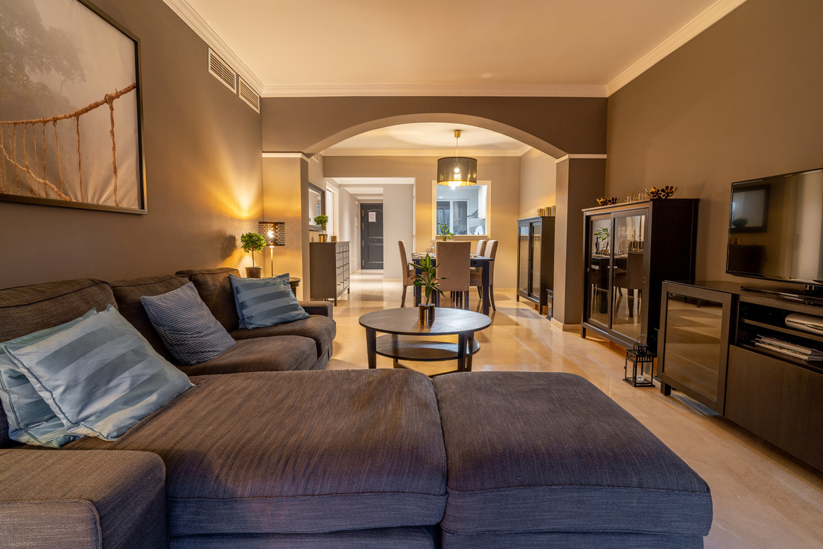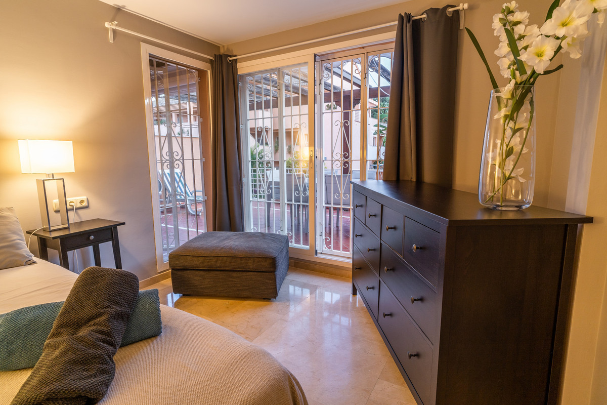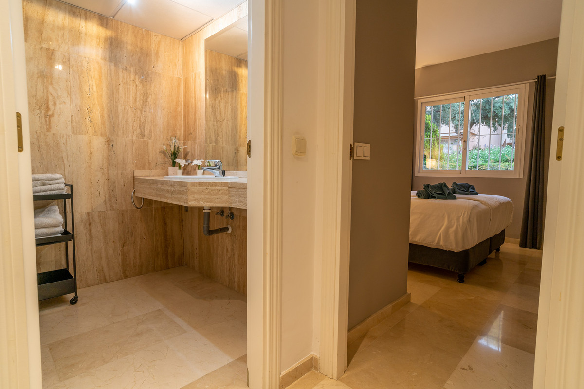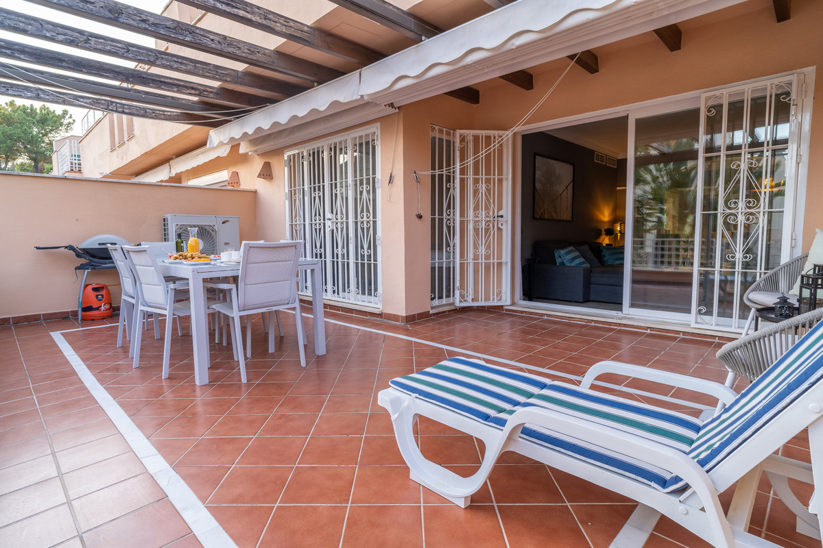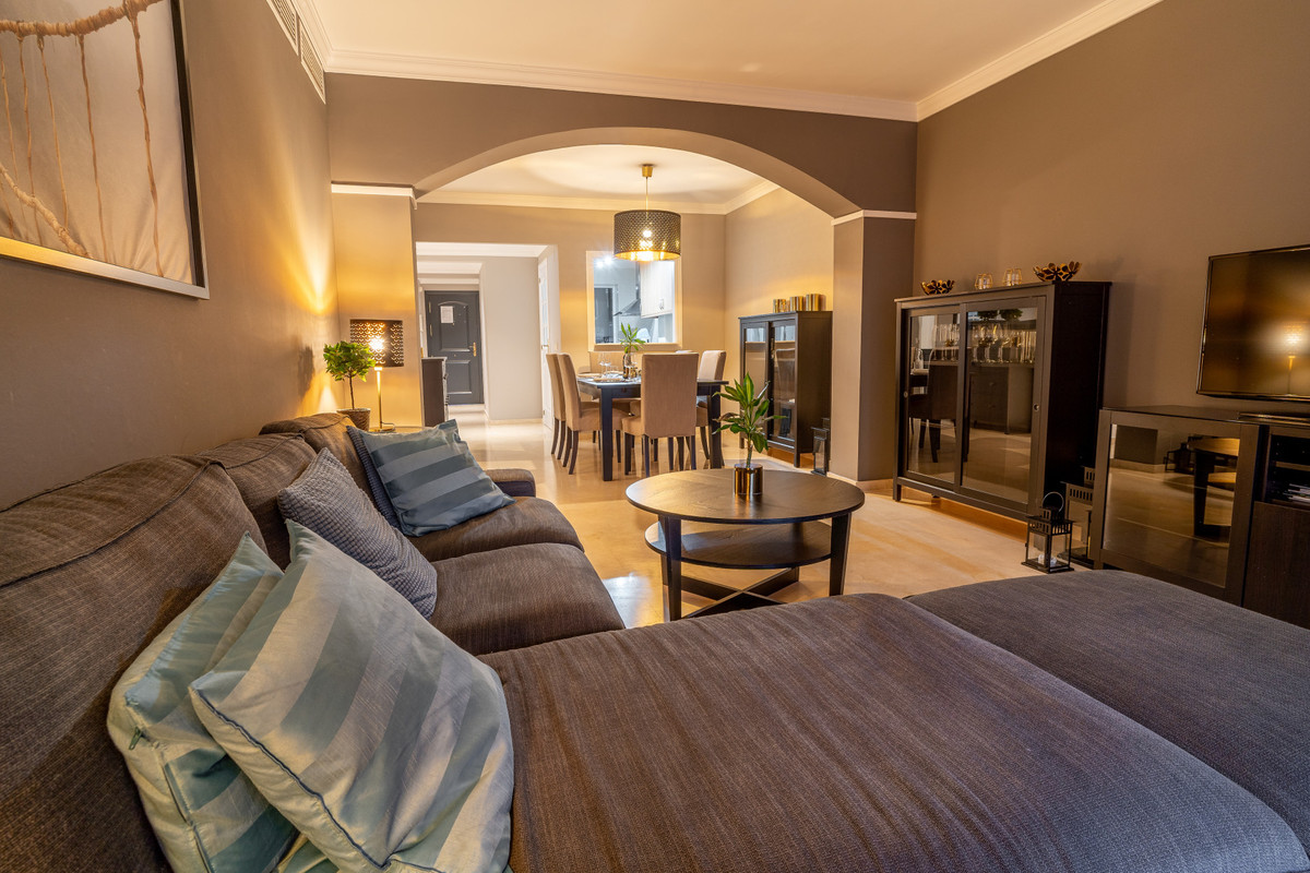 This ground floor apartment decorated with great detail is located in the Los Jardines de Santa Maria Golf urbanization, in the Elviria area, a very quiet place where you can relax and close to all services, just 500 meters from the center commercial area of Elviria, where you can find supermarkets such as Supersol or Supercor, in the area you can also find restaurants and a beach where there are beach bars and beach clubs.
