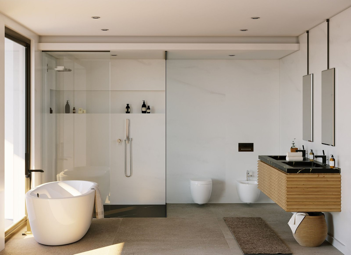 Featuring a spacious, enclosed living area of 405m2 full of natural light, featuring a sizeable living area with a feature fire place, luxury kitchen with high end appliances, dining area, 5 bedrooms and 5 bathrooms plus a guest toilet. With incredible panoramic sea views from the living area, master bedroom and 179m2 roof top solarium