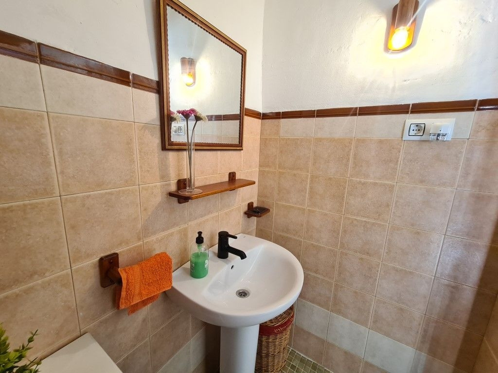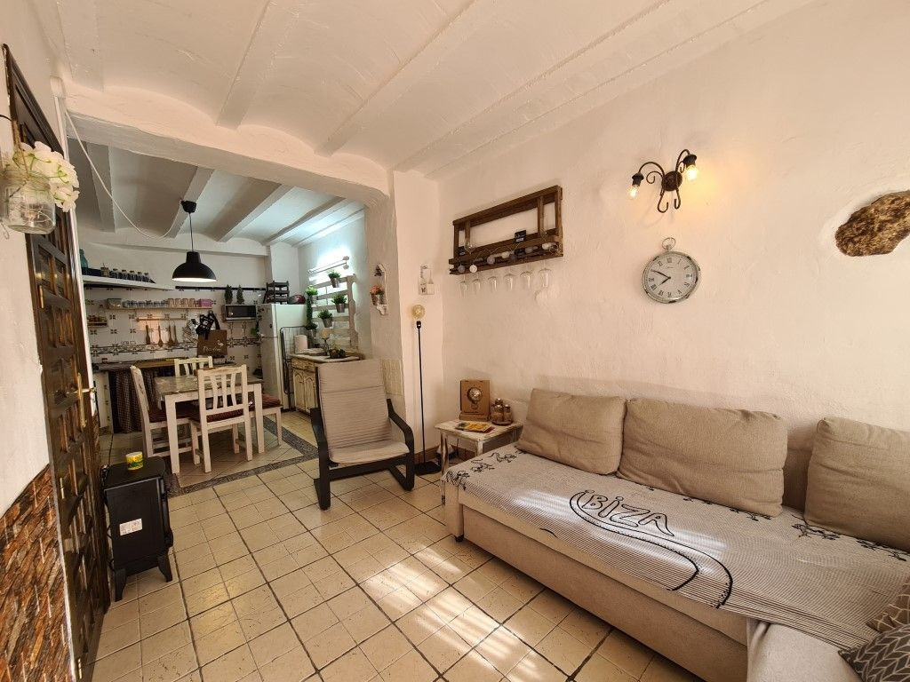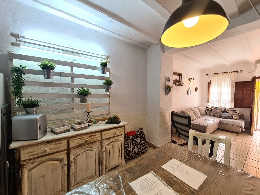 We present to you this charming townhouse in La Pinilla, Fuente Alamo, Murcia. Located close to amenities, a local bar in just around the corner and a grocery shop just 10 m away, this beautiful property has a rustic style and is sold furnished as seen. As you enter, you have the living area with a sofa bed, a toilet and an open kitchen/dining area that is completely equipped.