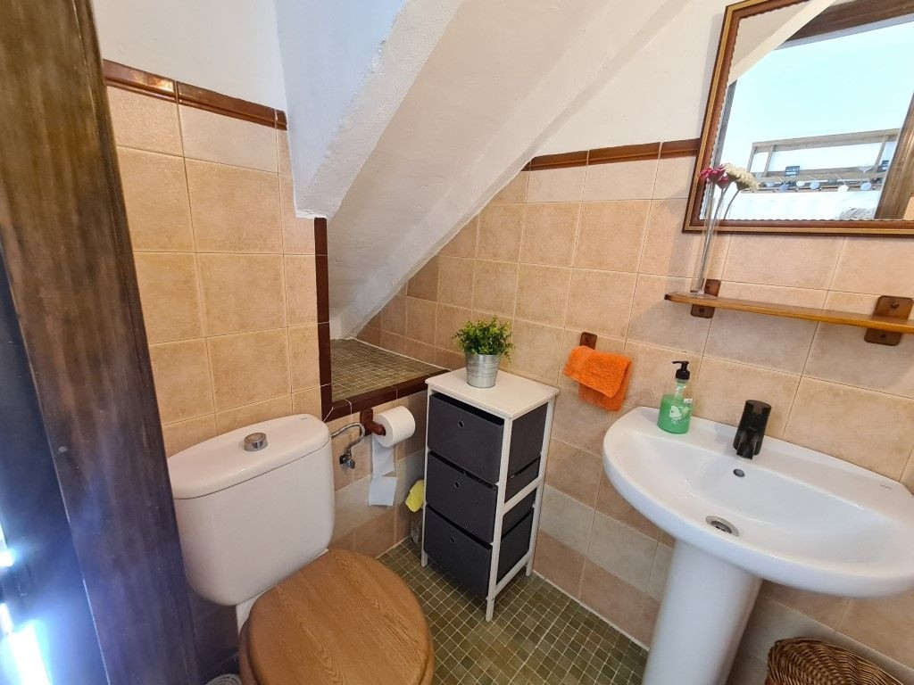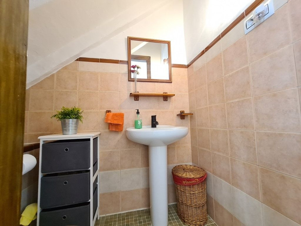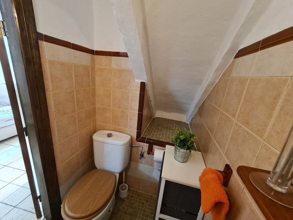 Through narrow stairs, you access the top floor, there is a complete bathroom with shower, a guest bedroom with wardrobe and the master bedroom has a king size bed and a lot of natural light.