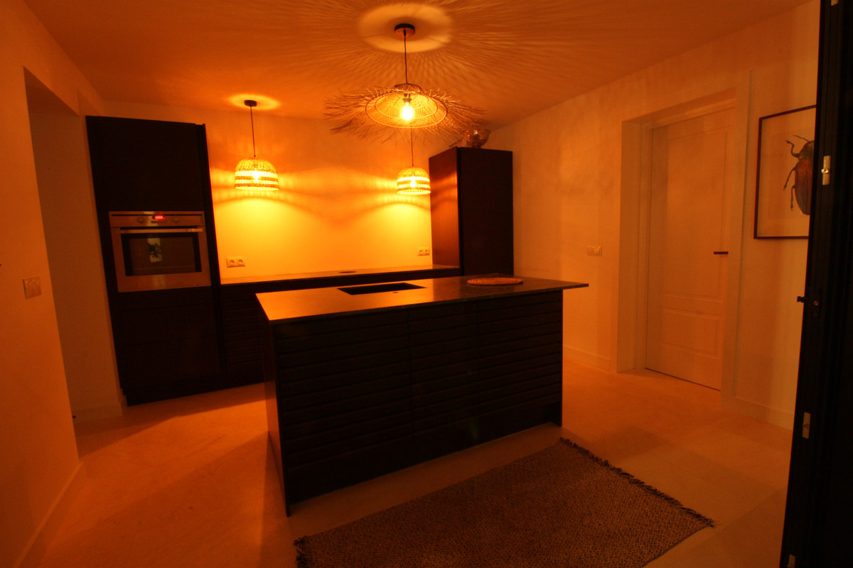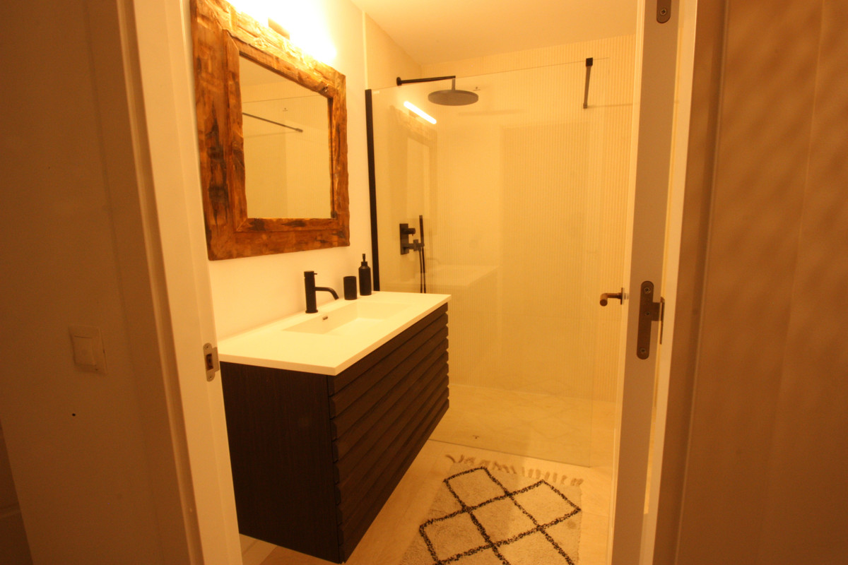 The main house has 3 bedrooms, 2 bathrooms and a big kitchen facing the front terrace, all in one level and connected to the pool area. Under the terrace there is an annex bedroom of aprox 25m2 with its own small chill out terrace, and en suite bathroom.