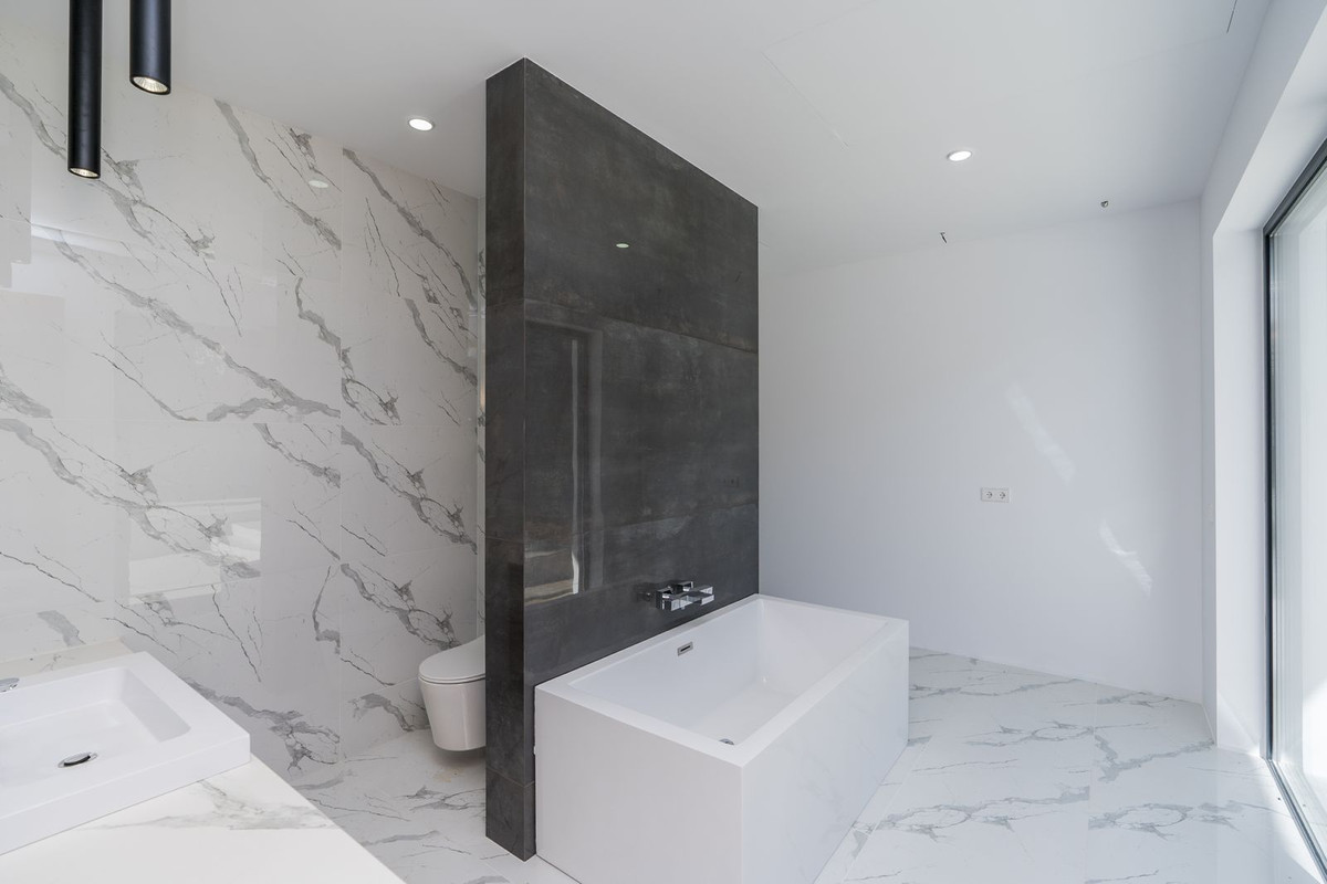 The roof terrace will be equipped with a jacuzzi, shower and an outdoor kitchen. Natural oak parquet is used on the floors of the house.