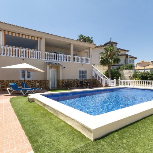 This Luxury Three Bedroom Detached Country Villa in Algorfa surrounded by lemon groves is located next to the urbanization of Montebello just behind the local ‘Zoco Sunday Market'. There are plenty of amenities all within a short drive such as bars, restaurants & the 5* La Finca Golf, Hotel & Spa Resort just down the road. This property comprises in the main house of a separate fully fitted kitchen with dining area; spacious lounge/dining room with access out to the front covered terrace; three double bedrooms, the master with an en suite shower room and a family shower room. Internal stairs lead to the roof top solarium, where there are stunning views of the entire plot of lemon groves and countryside. There is also a 100m2 basement garage, a small additional house possible for more accommodation, an outside BBQ area, a reservoir for the trees, a fresh water well, etc..<br /