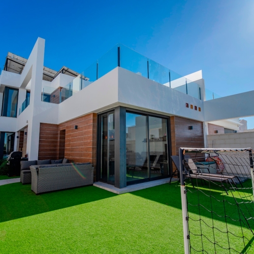 A South West Facing, Three Bedroom, New Semi Detached Villa in Rojales, totally unique high quality finish; enjoying spectacular countryside views, with the famous caves opposite. Walking distance of all amenities, ie supermarket, shops, bars, pharmacy, municipal sports ground & pool, medical centre; close to golf and the beach just a 12 minute drive. The villa comprises: light entrance vestibule with stairs leading to the main accommodation: lounge/dining room with 3 double doors, 2 lead out to a balcony, so is a very light & airy room; separate fitted kitchen; 3 double bedrooms with fitted wardrobes; 2 modern shower rooms with double walk-in showers. Internal stairs to a beautiful large solarium where you can relax away the hours with unspoilt views; high ceiling double garage, great opportunity to extend the accommodation. Many extras: room for a pool, air con, pre-installation for central heating.<br /