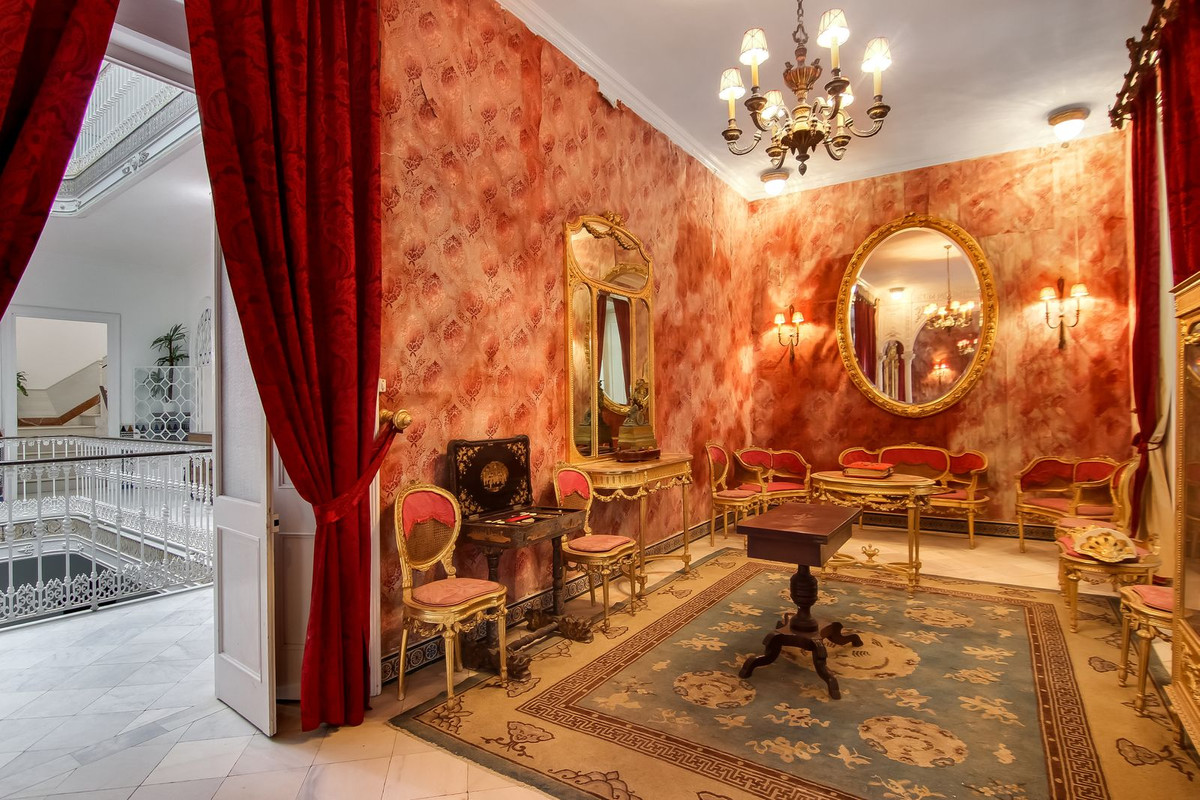 Due to the good orientation, and the crystal glass top, the property has a lot of natural light and open spaces. High ceilings, the spaces, all the different rooms makes this beautiful historic building to feel very special. It has a lot of beautiful and old, original materials from the year 1850 all around the property. Property has a lot of rooms, lounges, central courtyards and on the entrance level you have the welcoming fountain. This property has amazingly lot of storage spaces, separate entrance for maintenance/service people from the side road.