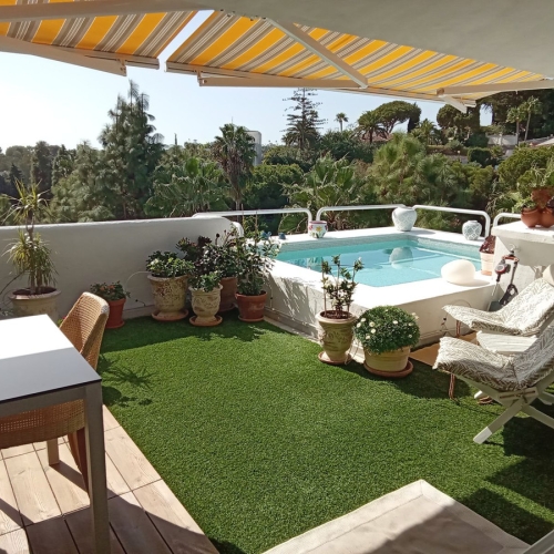 Immerse yourself in the epitome of coastal living—a stunningly renovated duplex offering unparalleled sea views. Welcome to a sanctuary nestled within the renowned Doña Lola resort complex, where tranquility harmonizes with convenience, creating a haven for those seeking elevated living experiences.