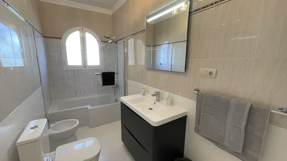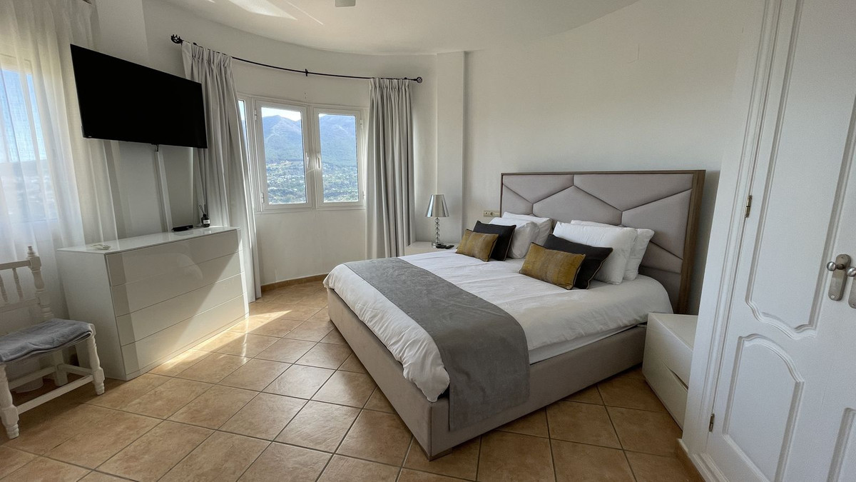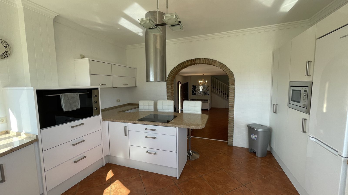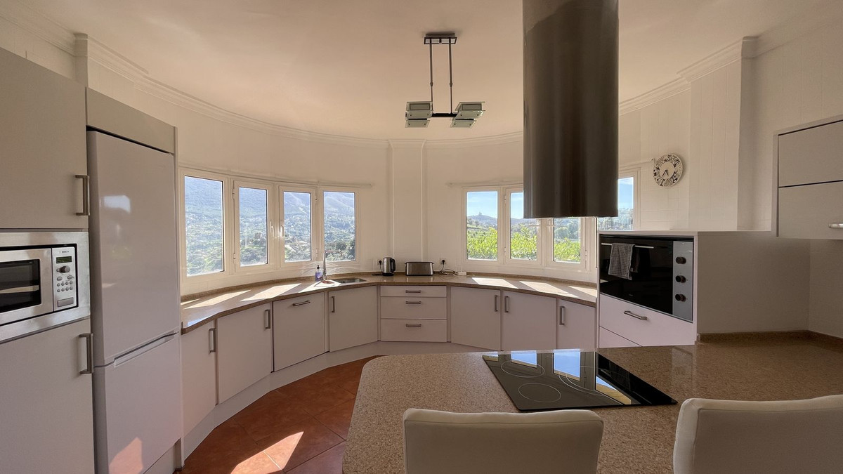 Outside, there is a large pool and barbecue area, perfect for entertaining guests or enjoying the sunny climate and the incredible views. In addition, the property includes a separate guest apartment with one bedroom, a living room, and a kitchen, providing plenty of space for visitors or extended family.