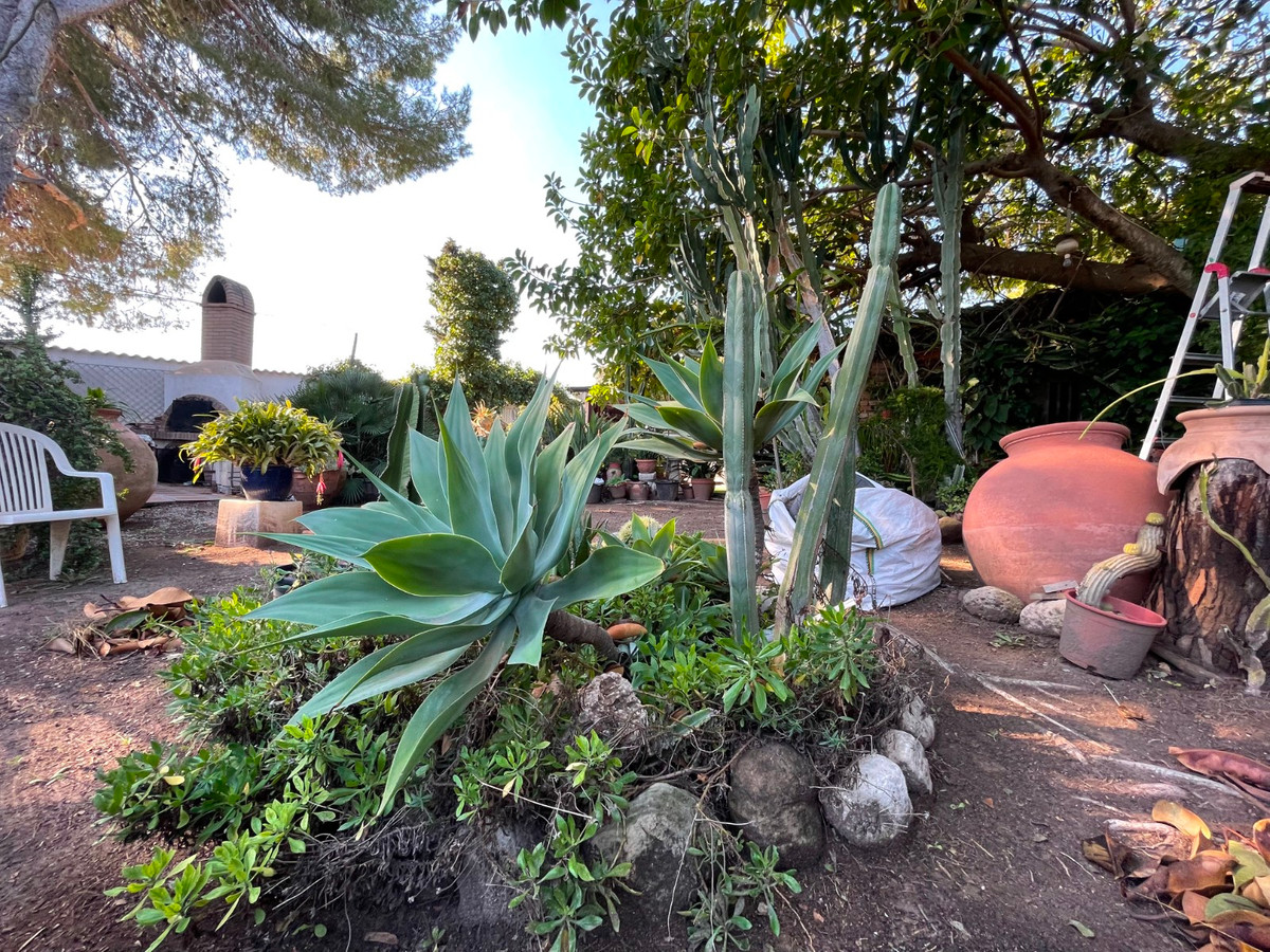 It is an independent house with 1250 m2 of land full of gardens, several mature trees, a stone barbecue and a small lake with water lilies.The house has 5 bedrooms and 2 bathrooms.Mosquito nets on the windows, gas stove, electric heating, centralized a/c. The house has good water pressure.It has a semi open garage, semi covered terrace, a small shed. There are two driveways - one manual, one automatic. Video intercom.Baker passes through the door every day!