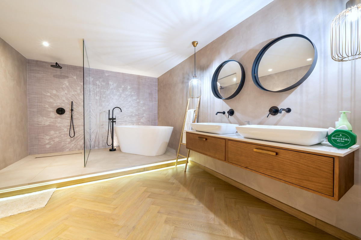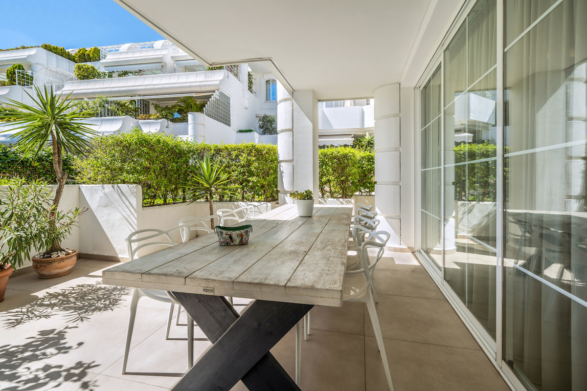 Amazing beachfront and fully furnished ground floor apartment offering a very spacious accommodation and located in the development Andalucia Beach on the New Golden Mile. Two apartments have been joined together to create this superb 4 bedroom family apartment. This fully renovated apartment features a new kitchen, bathrooms, electrics, plumbing and flooring with underfloor heating. Fabric wallpaper, feature walls and attractive lighting make the apartment both cosy and luxurious. The property consists of a large entrance hall, an ample lounge / dining room, an open plan fully fitted kitchen, 2 guest bedrooms with en-suite.