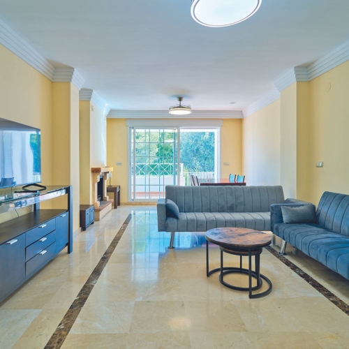 This Two Bedroom Corner Garden Apartment has a great private terrace with glass curtains, while a private garden offers you a tranquil oasis for relaxation. Urb. Pueblo del Rio is nestled on the banks of the Rio Real and surrounded by the majestic Sierra Blanca mountain peaks, is renowned as one of the most picturesque urbanizations in Marbella. Only seconds to one of the best beaches on the coast and minutes from the main city centre of Marbella and shopping center La Cañada.
