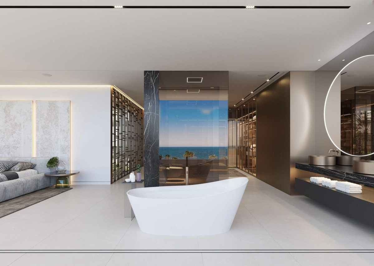 Surrounded with high-end properties of the Golden Mile, this perfectly executed contemporary property is just 250 meters away from the sandy beach and an array of amenities, well-known restaurants and bars, 5-star iconic hotels like Puente Romano, designer boutiques, shops and supermarkets.