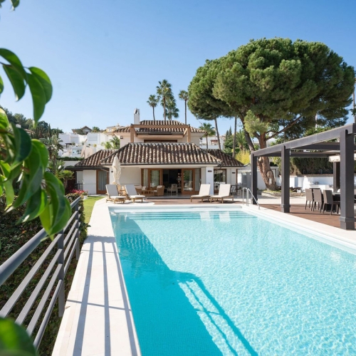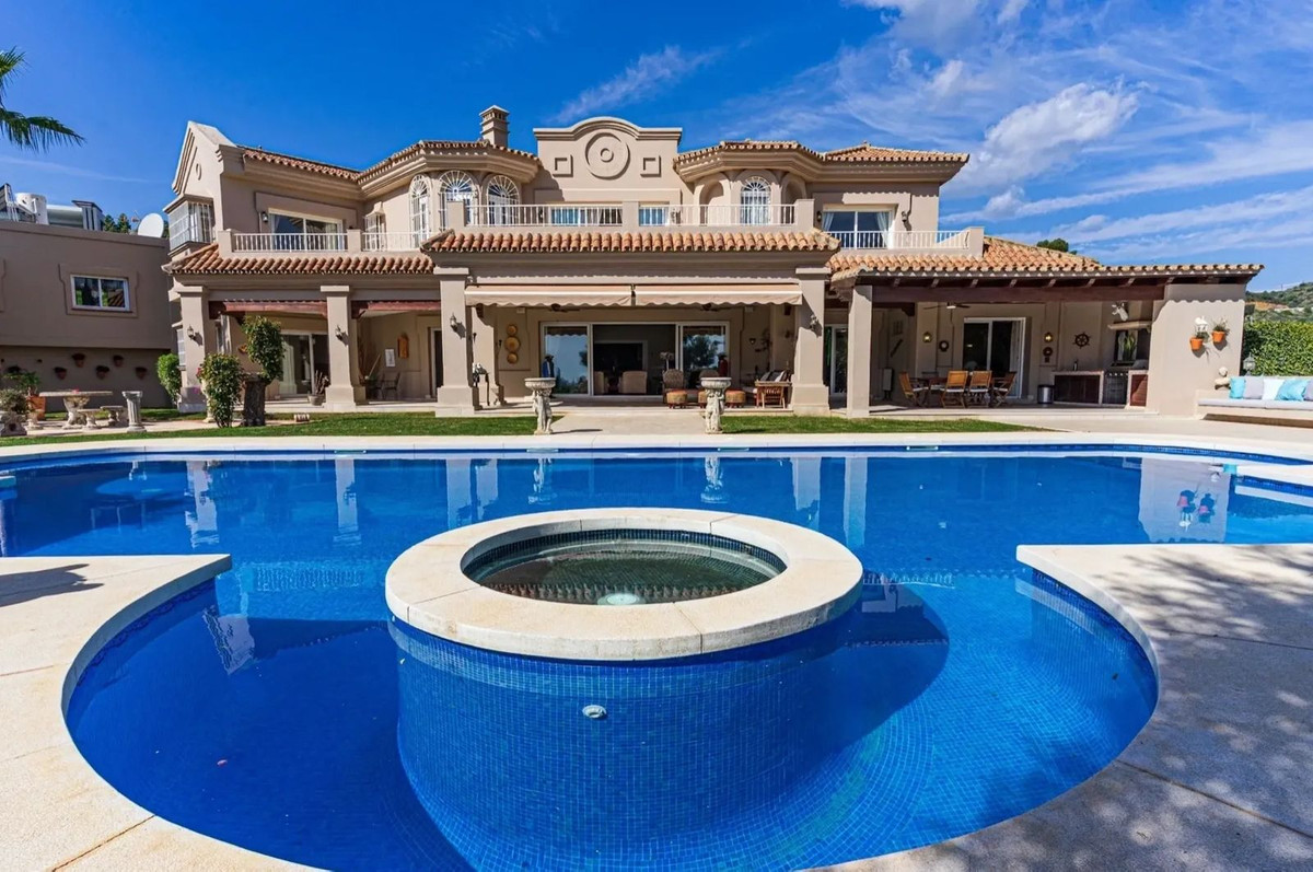 This impressive luxury mansion, nestled in the heart of Nueva Andalucia, boasts 7 bedrooms and 8 bathrooms (5 En-suite) and sits on an expansive elevated and unique plot of over 3000m2. Offering breath-taking panoramic views across the famed Golf Valley to the Mediterranean Sea, Africa and beyond, the property is an exquisite traditional and architecturally beautiful Andalucian mansion. The stunning south-facing orientation of this Estate allows for all year-round sunshine and spectacular vistas.