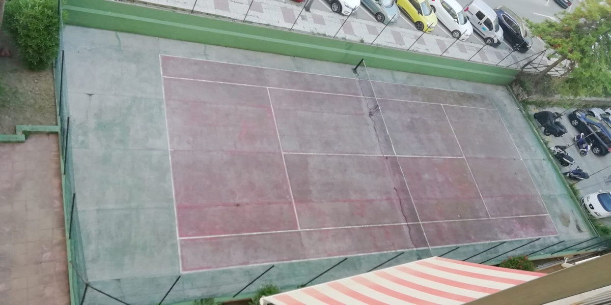 Spacious and bright apartment on the 6th floor, morning sun until 2 in the afternoon, views of the tennis court and gardens and a little view of the sea.