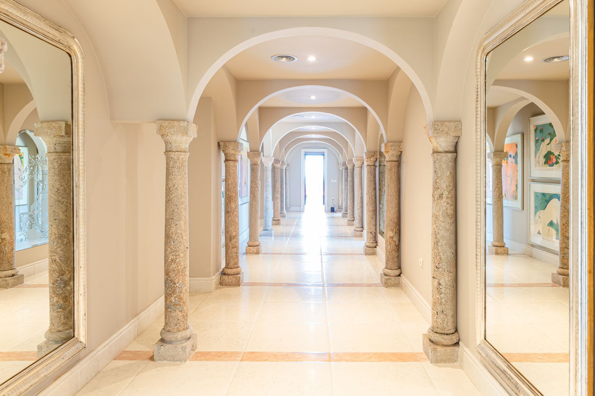 With Almost 1200m2, this amazing property has 5 bedrooms with 5 bathrooms en suite, one guest toillet, living room with double high ceilings, separate dinning room, kitchen with two double fridges, two ovens, two dishwashers, huge solarium with a private heated pool on the rooftop, and 360º views to the sea, mountain and golf.