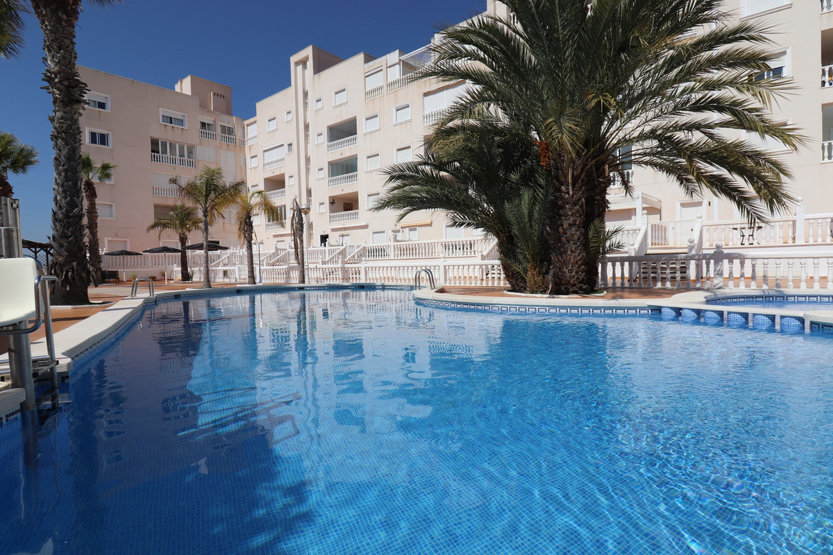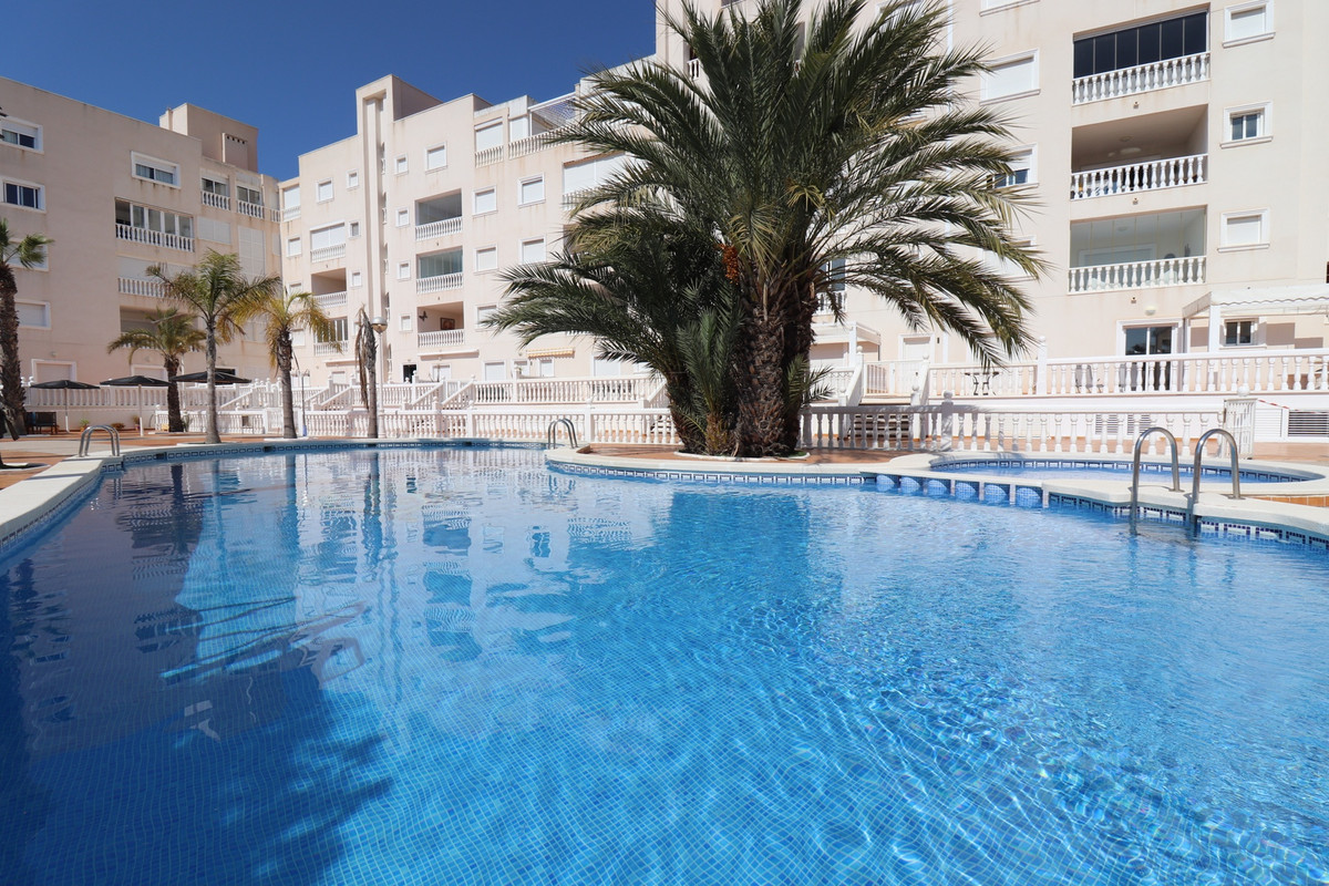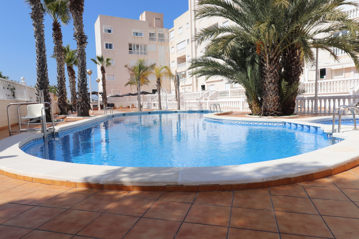 Located only a 5 minute drive from the beaches of Guardamar, and facing from the other side the mountain views out over to Elche this really is a tranquil place to be.  Well maintained, sold partly furnished, this apartment is definitely worth viewing quickly.  Making a sensible choice for everyone be it a home, a retirement home, a rental investment or holiday home near the sea, it really offers a lot of opportunities