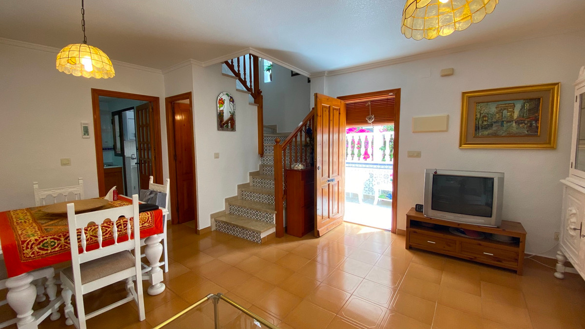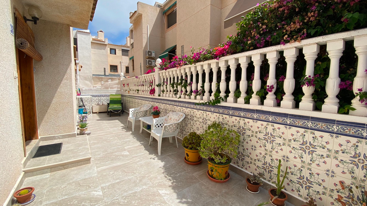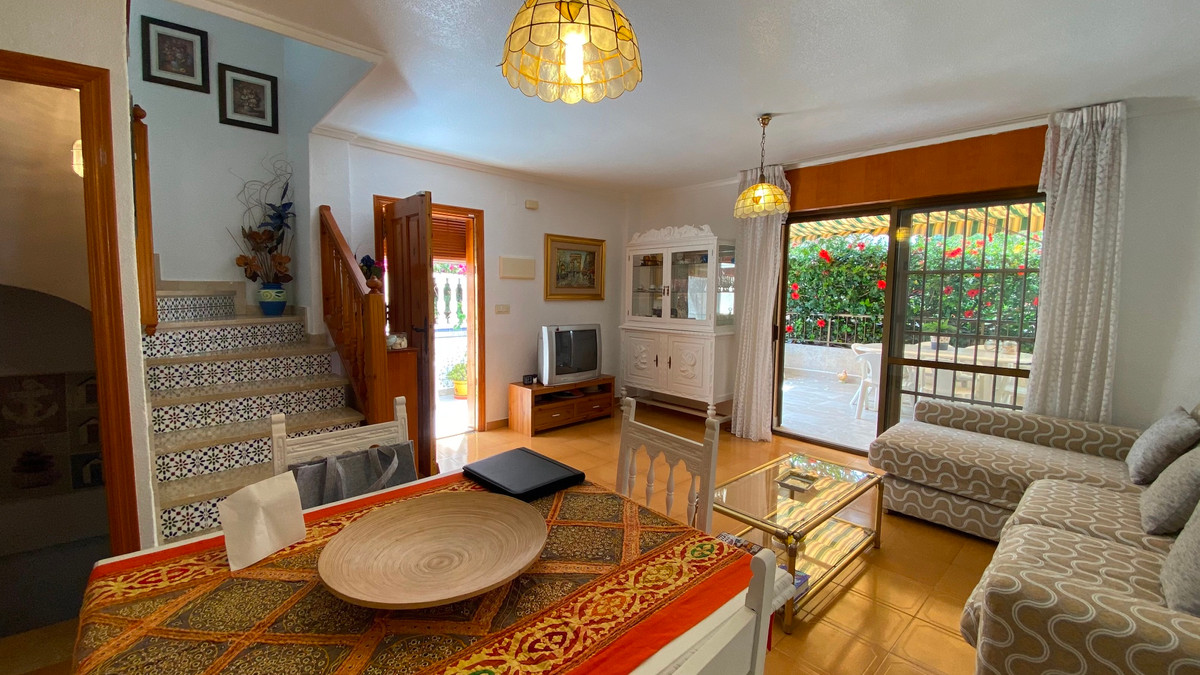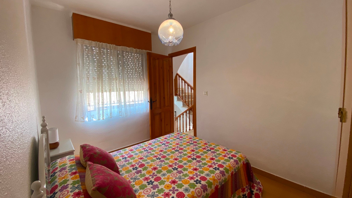 This beautiful 4 bedroom, 3 bathroom villa is located just 300m from Guardamar Del Segura beach. It belongs to the urbanization "Las viñas" which has the advantage of being in the center of the town on one of the main streets with many restaurants, bars, supermarket and shops. The property is distributed over 4 floors of a total of 163m2, the plot is 100 m2, there are 4 spacious bedrooms (the master bedroom with balcony overlooking the sea), 3 bathrooms, large living room with an electric fireplace, fully equipped kitchen, large terrace, garden, storage room and cupboards. Private garage with storage room which can be entered directly from the house downstairs, a room that could be turned into a bedroom. The communal swimming pool is located in the middle of the urbanization which is only accessible to the homeowners of this urbanization. The property is ideally located in the Center of Guardamar and a short walk to the beach. It is being sold partly furnished.