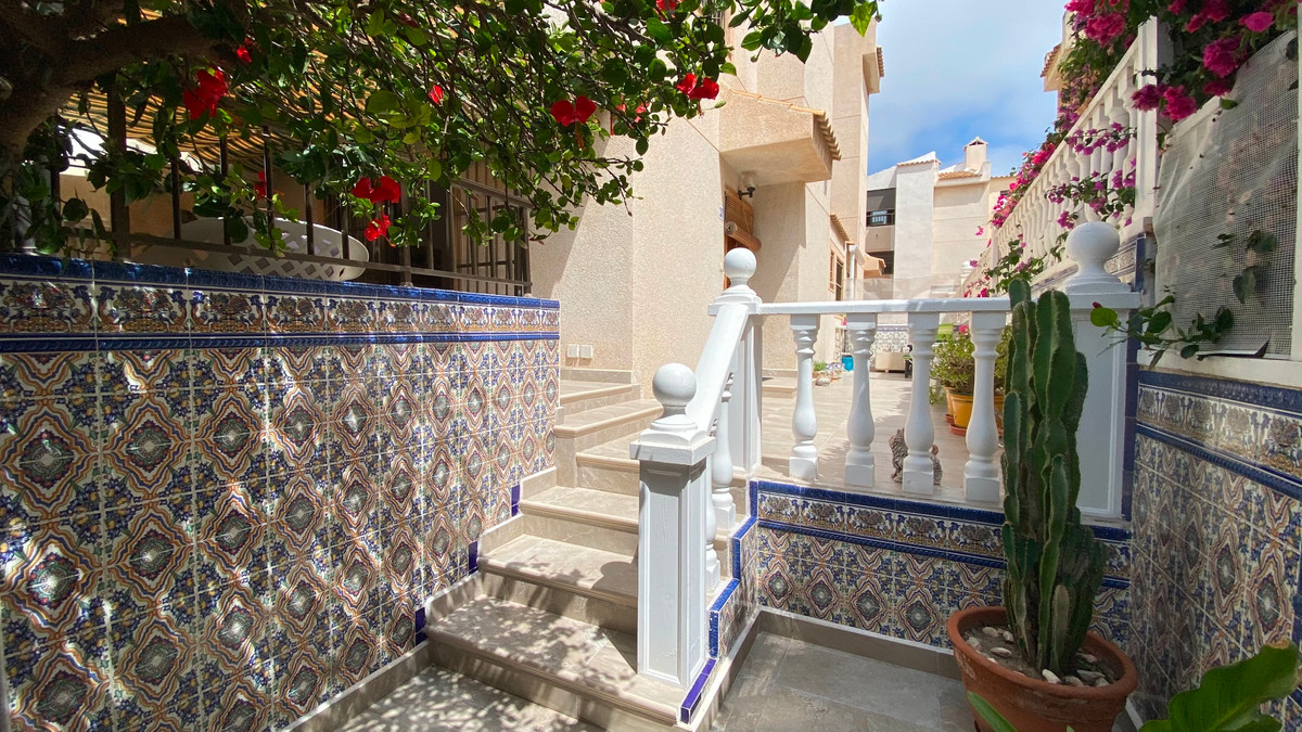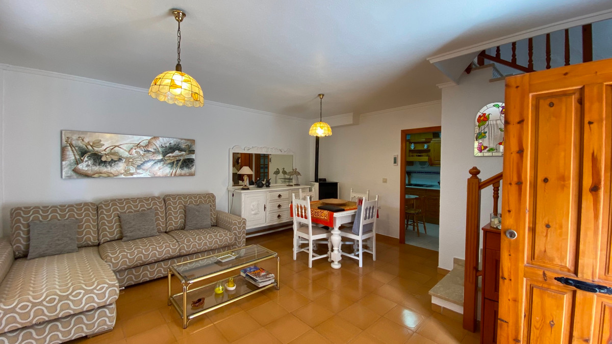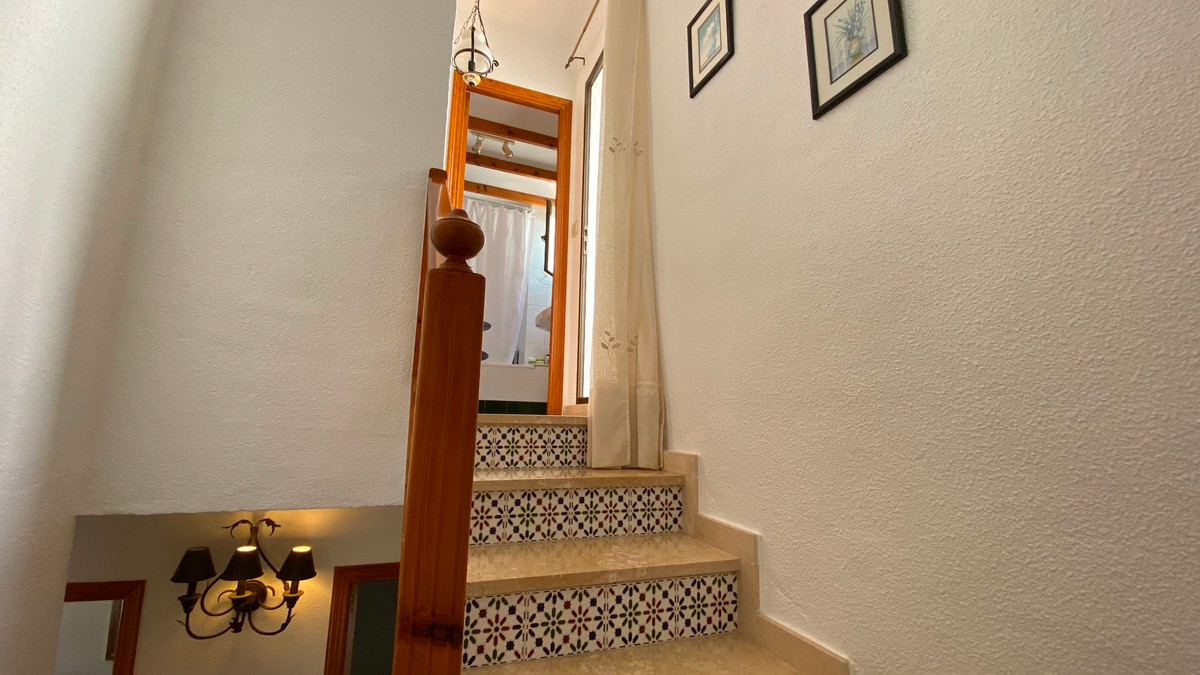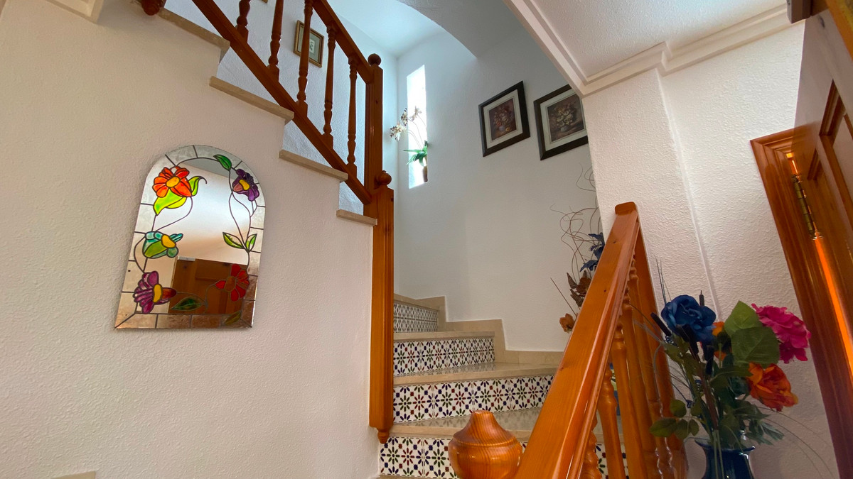 This beautiful 4 bedroom, 3 bathroom villa is located just 300m from Guardamar Del Segura beach. It belongs to the urbanization "Las viñas" which has the advantage of being in the center of the town on one of the main streets with many restaurants, bars, supermarket and shops. The property is distributed over 4 floors of a total of 163m2, the plot is 100 m2, there are 4 spacious bedrooms (the master bedroom with balcony overlooking the sea), 3 bathrooms, large living room with an electric fireplace, fully equipped kitchen, large terrace, garden, storage room and cupboards. Private garage with storage room which can be entered directly from the house downstairs, a room that could be turned into a bedroom. The communal swimming pool is located in the middle of the urbanization which is only accessible to the homeowners of this urbanization. The property is ideally located in the Center of Guardamar and a short walk to the beach. It is being sold partly furnished.