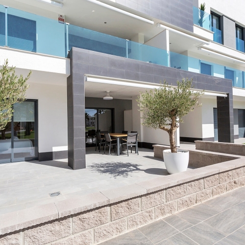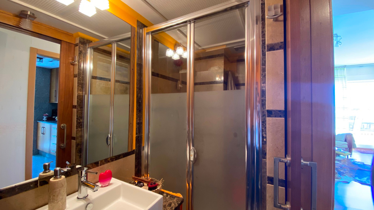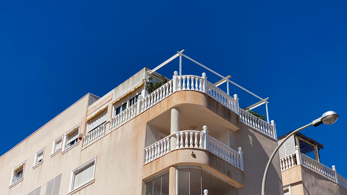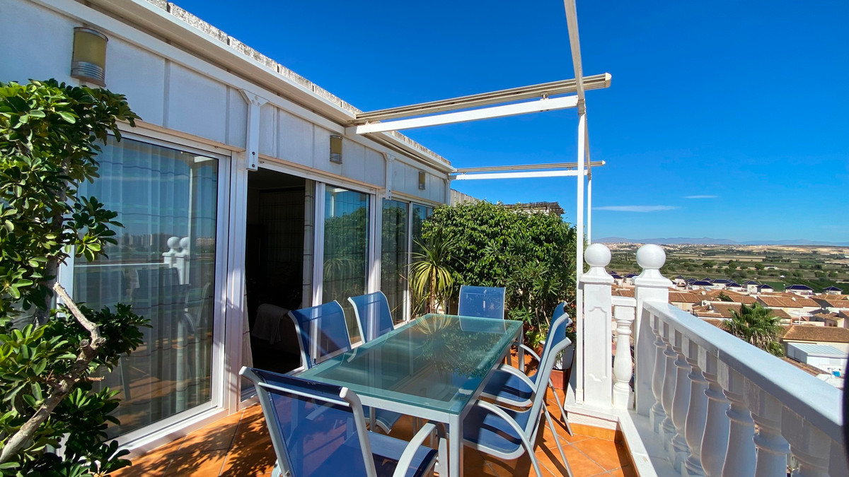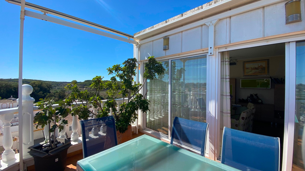 The property has central air conditioning and alarm. The block has lift access to the communal solarium which also has facilities of sunbeds and BBQs to enjoy the breathtaking views from above over the countryside to the sea or inland towards the mountains. The complex is very mobility/wheelchair friendly, with good access to all areas, including the pool. This complex also has a general office to access and meet with the community president, to access shared toilet and shower facilities, to store bicycles etc. Around the solar heated communal pool there are sunbeds in the summer months and seating areas provided, toilet and shower / changing area, from this relax area the views are amazing.