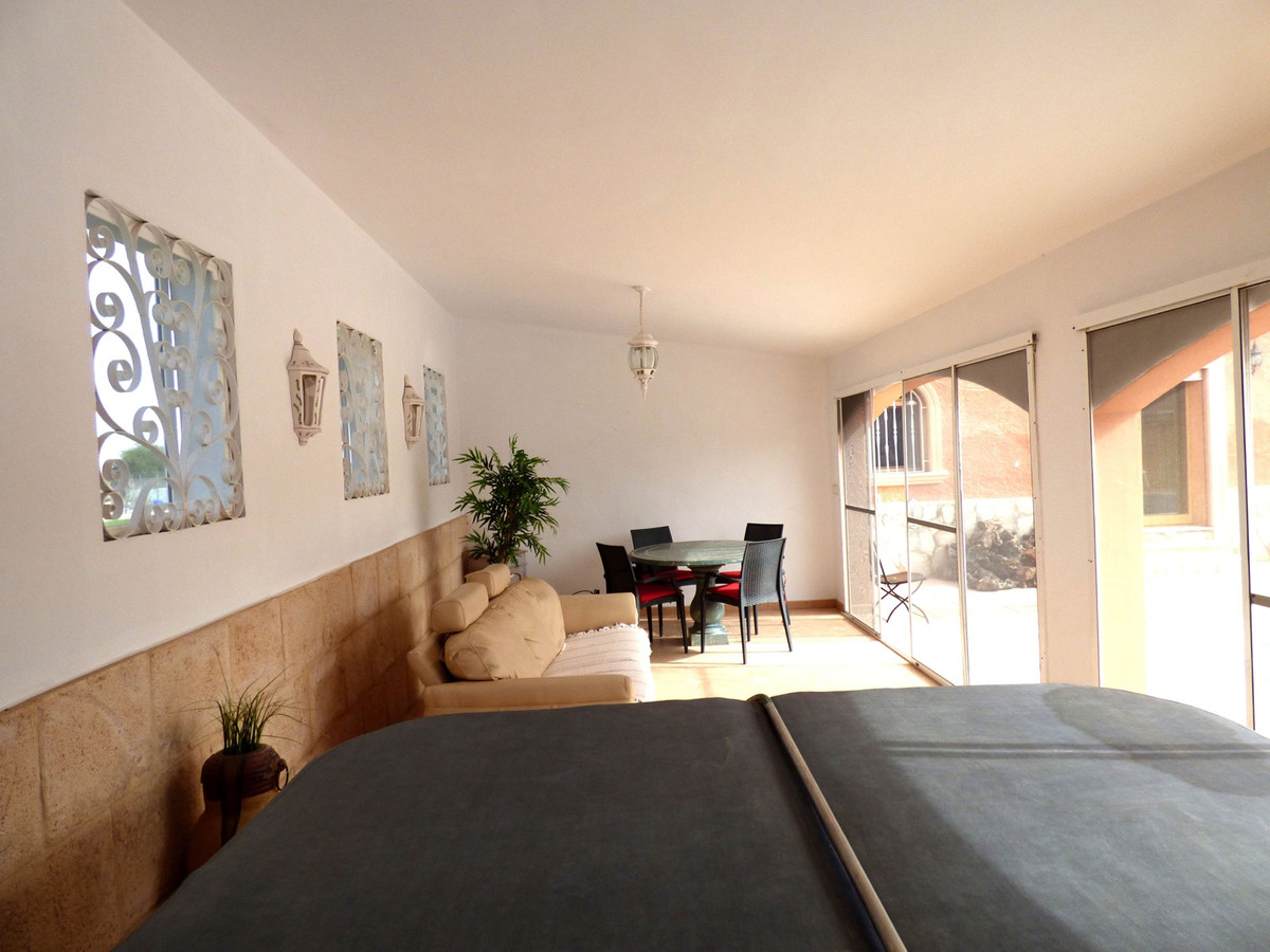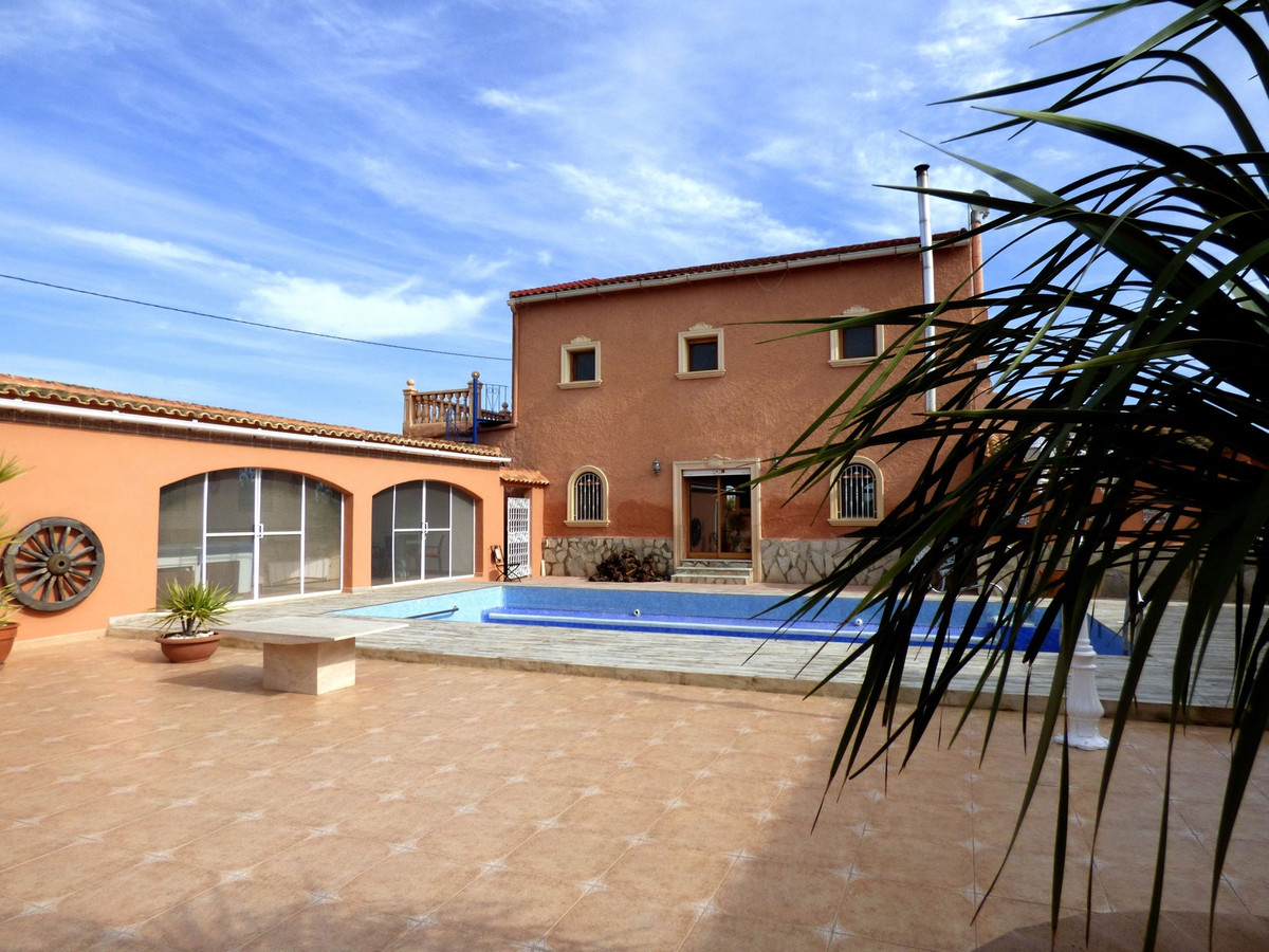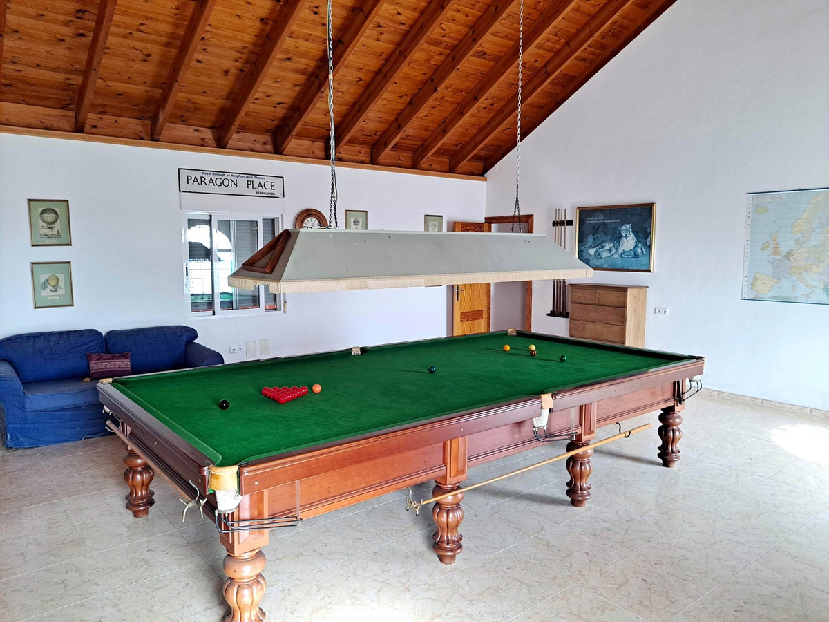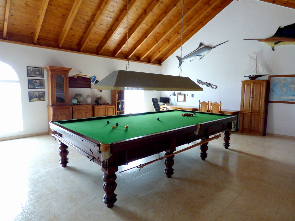 The size of the private pool is 10m x 5m with indoor seating area and a large sun terrace. Adjacent to the pool there is a large living room with a hot tub, jacuzzi and sofa and table for winter use or summer when using the pool. The plot is landscaped and there is a pergola, terrace and fruit and palm trees and large storage workshop.