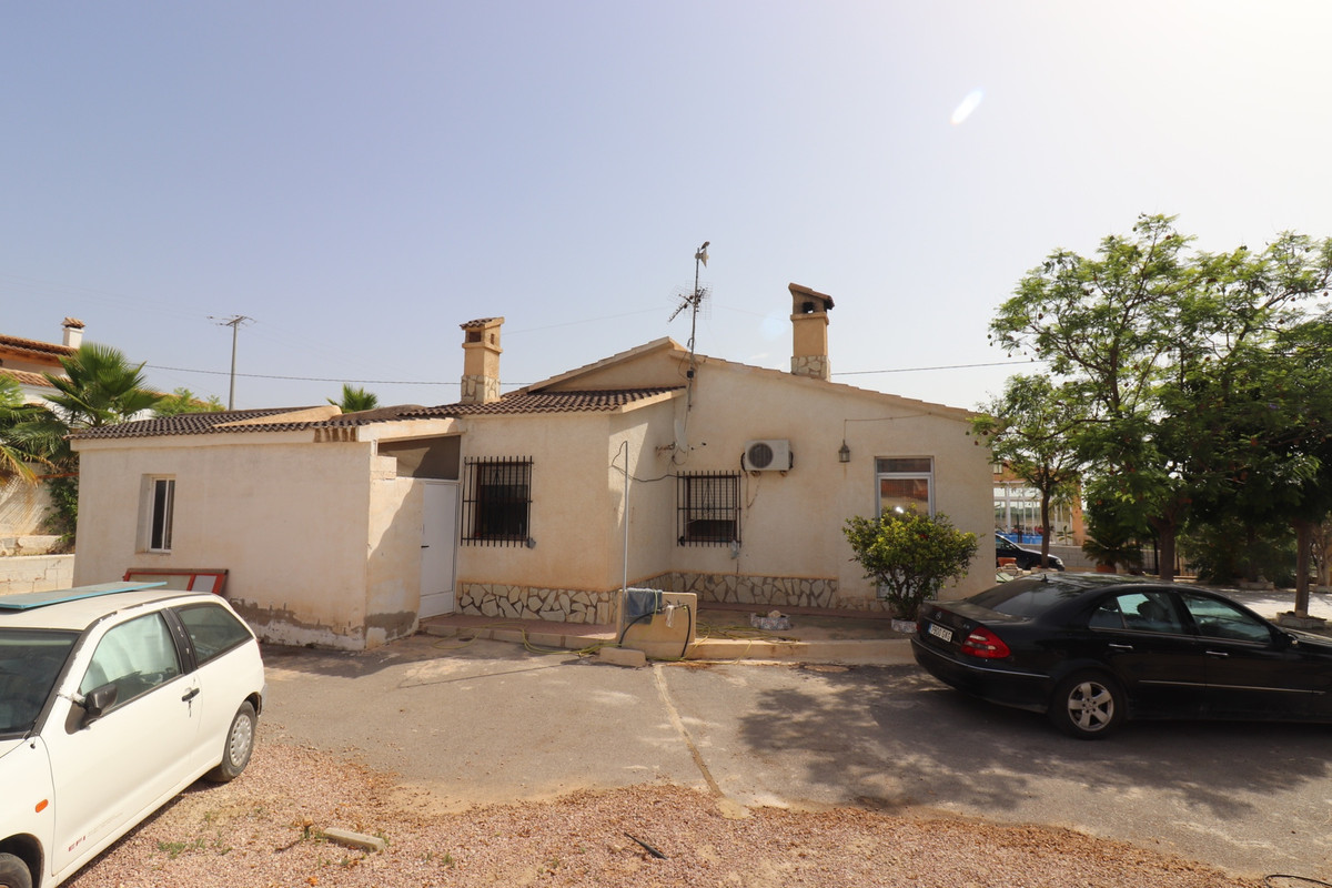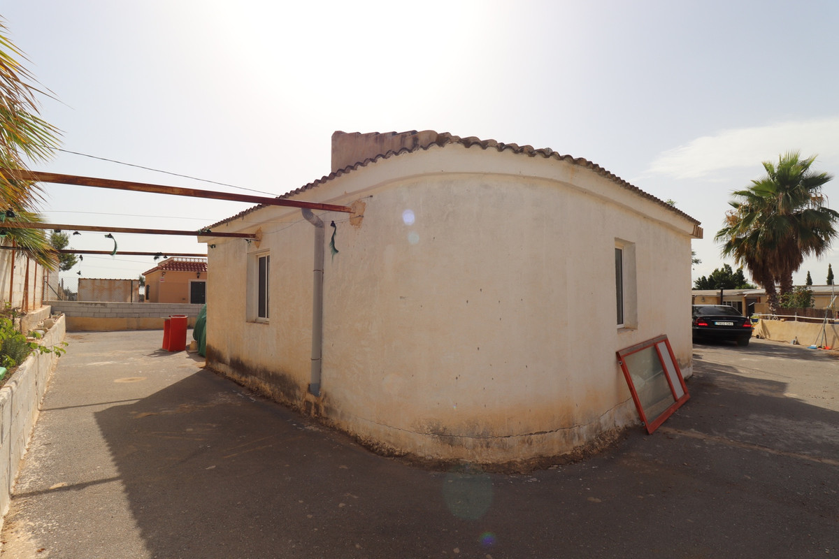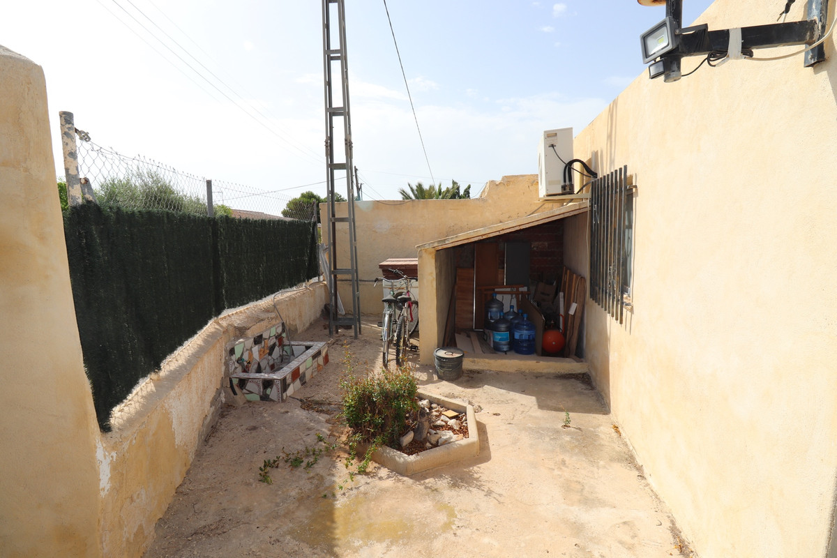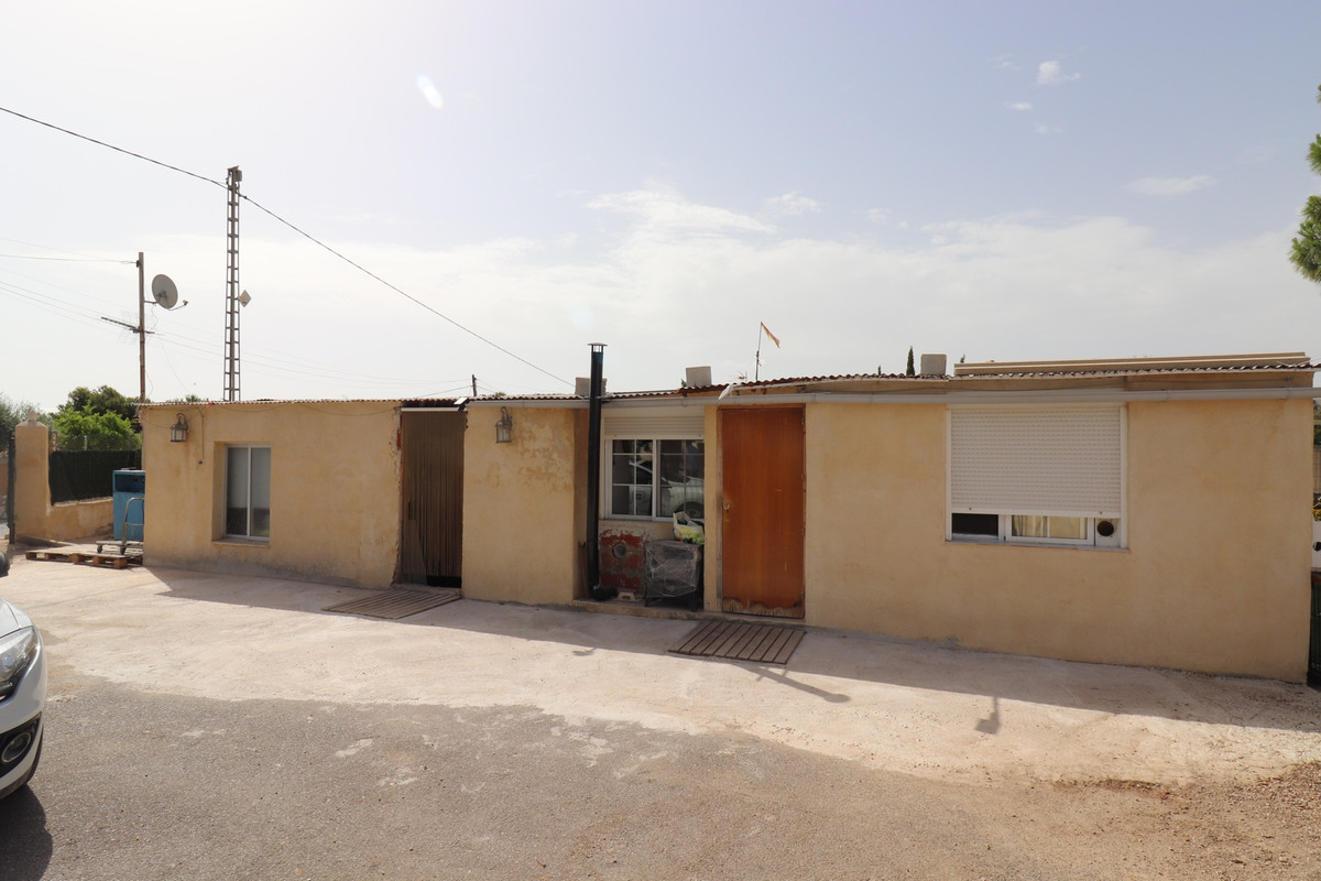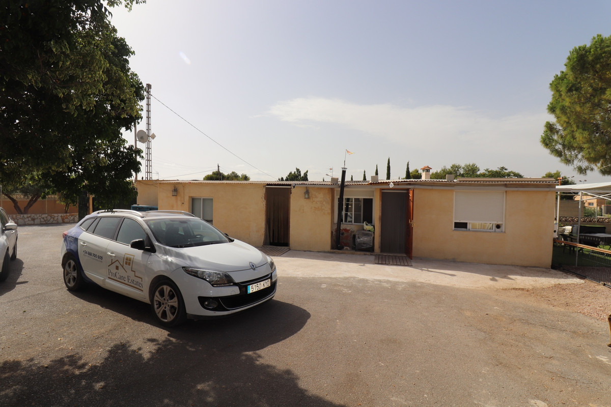 Opposite the main house is a large storage room, garage, at the moment used a hobby room (app. 40m2. The guesthouse with a complete kitchen, bedroom, bathroom and a small living is connected to the garage which gives you the possibility to establish another guesthouse as it is big enough. This property needs some cleaning up and updating, the bathroom is the main house has recently been done. This could be a great business oppertunity to rent out 3 separate units. Within 25 minutes from the airport, 20 min to the sea and 10 minutes to Crevillente and Albatera centra with bars, restaurants, dentists, doctors etc.