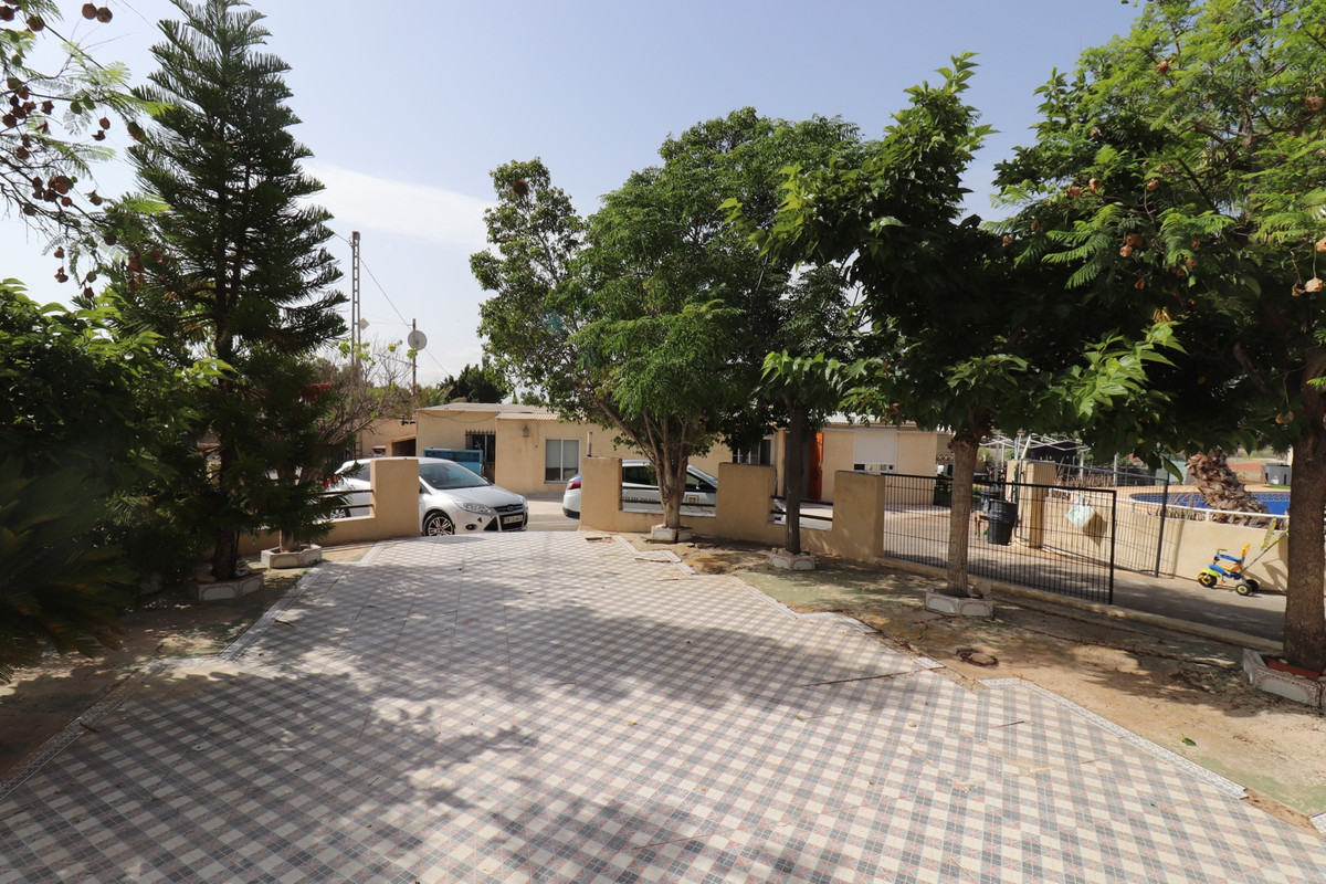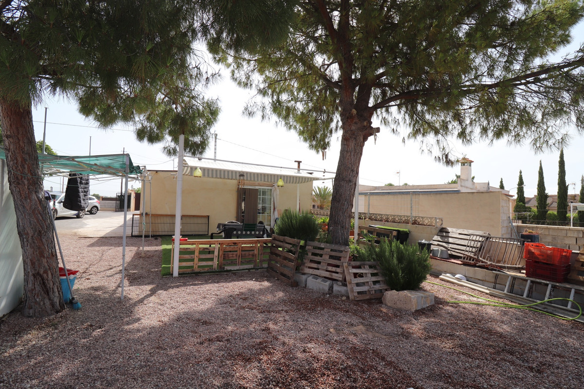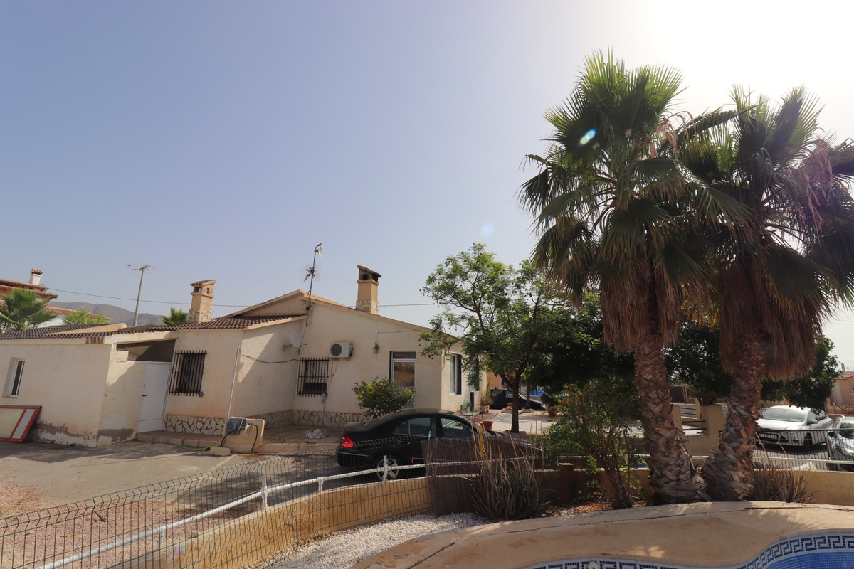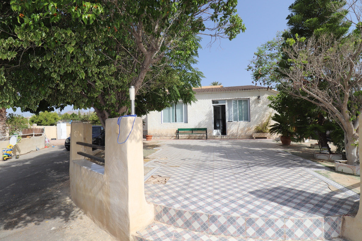 Opposite the main house is a large storage room, garage, at the moment used a hobby room (app. 40m2. The guesthouse with a complete kitchen, bedroom, bathroom and a small living is connected to the garage which gives you the possibility to establish another guesthouse as it is big enough. This property needs some cleaning up and updating, the bathroom is the main house has recently been done. This could be a great business oppertunity to rent out 3 separate units. Within 25 minutes from the airport, 20 min to the sea and 10 minutes to Crevillente and Albatera centra with bars, restaurants, dentists, doctors etc.