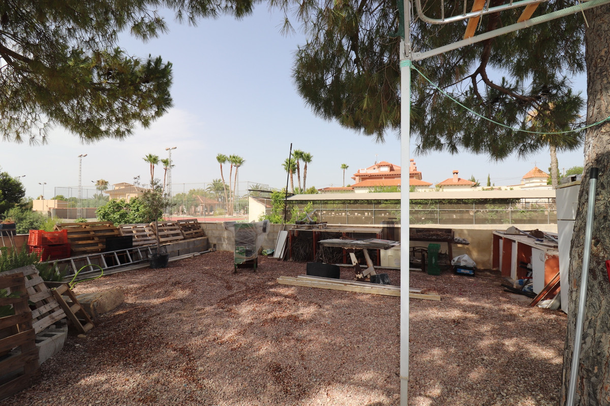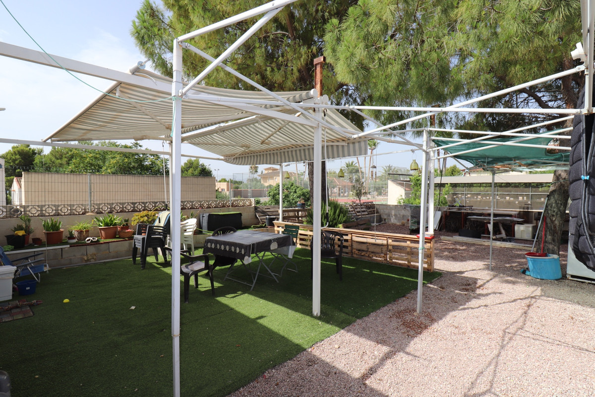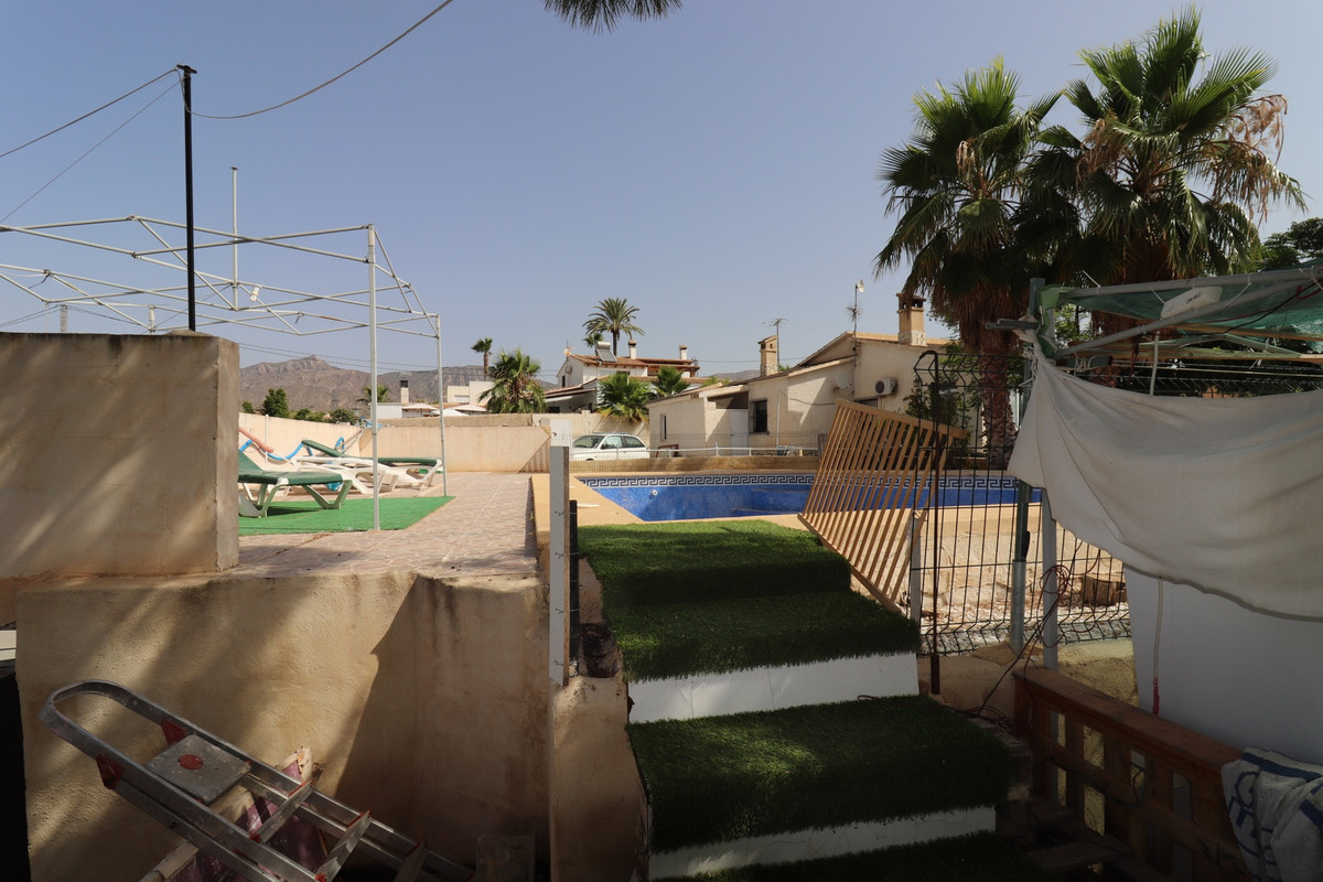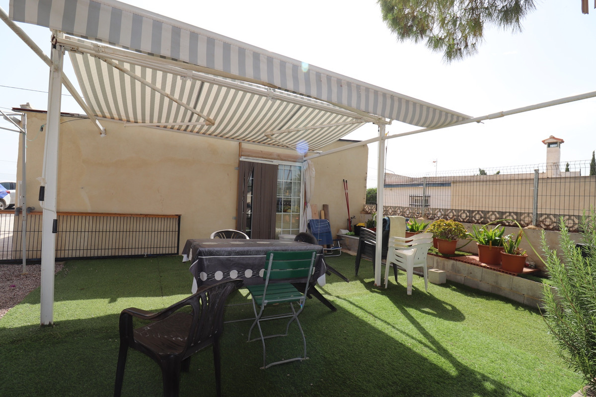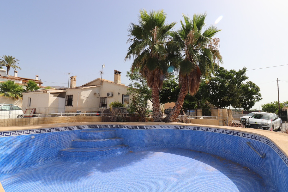Opposite the main house is a large storage room, garage, at the moment used a hobby room (app. 40m2. The guesthouse with a complete kitchen, bedroom, bathroom and a small living is connected to the garage which gives you the possibility to establish another guesthouse as it is big enough. This property needs some cleaning up and updating, the bathroom is the main house has recently been done. This could be a great business oppertunity to rent out 3 separate units. Within 25 minutes from the airport, 20 min to the sea and 10 minutes to Crevillente and Albatera centra with bars, restaurants, dentists, doctors etc.