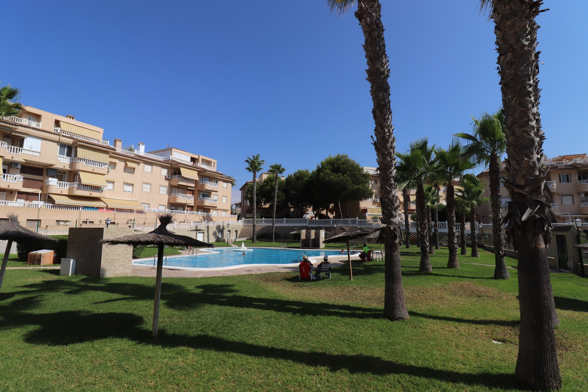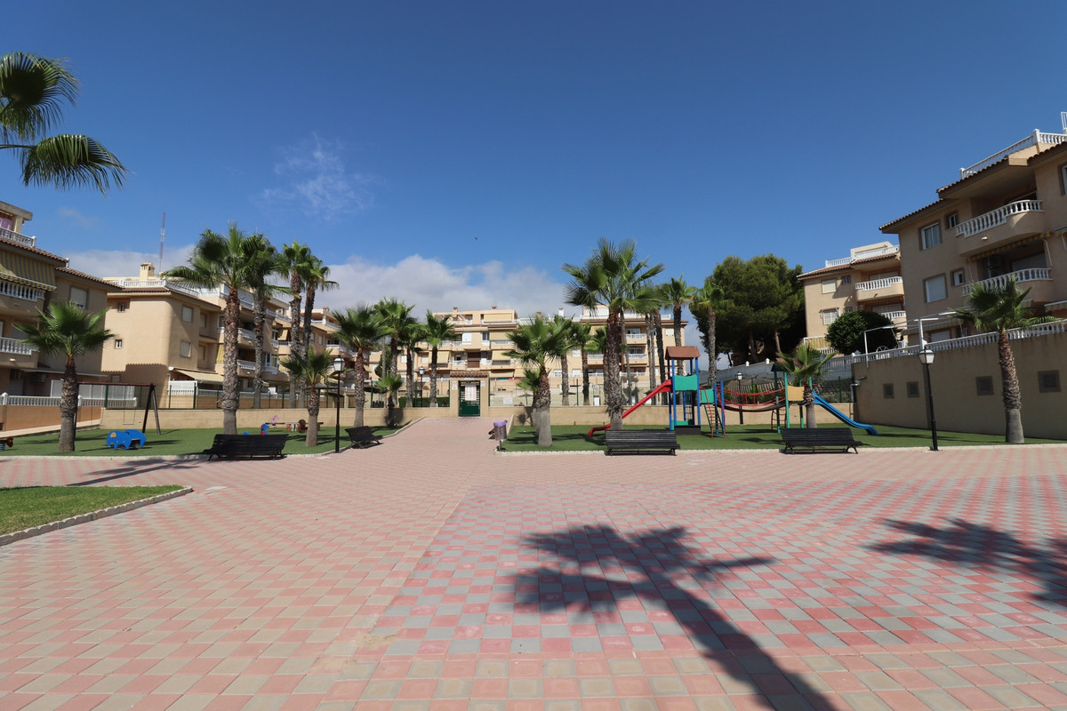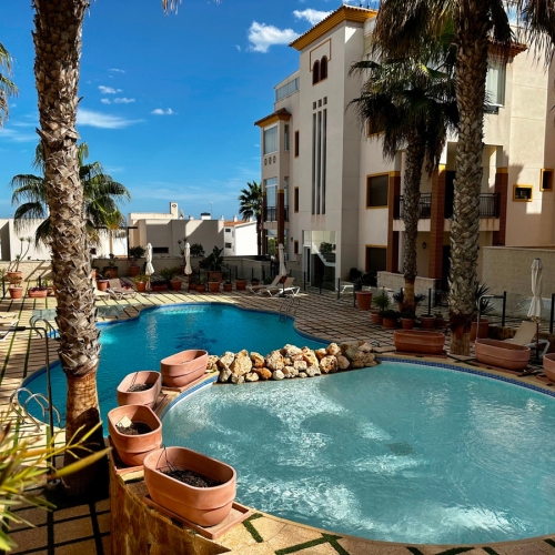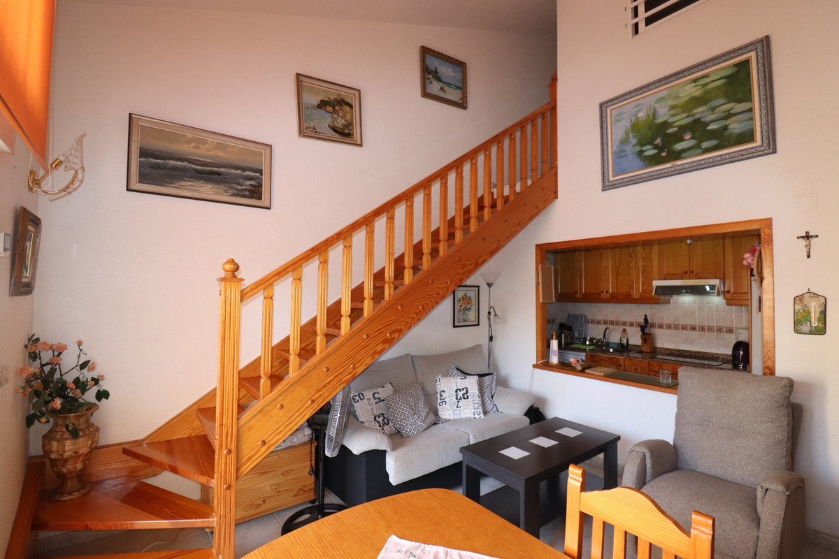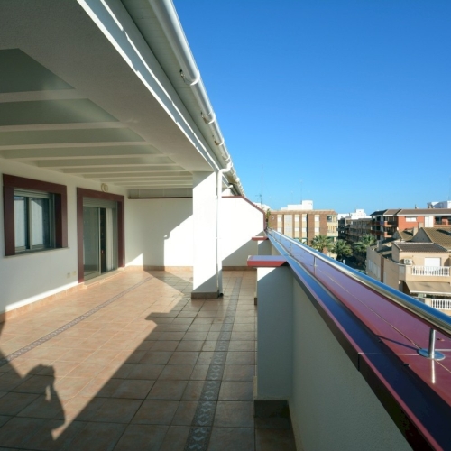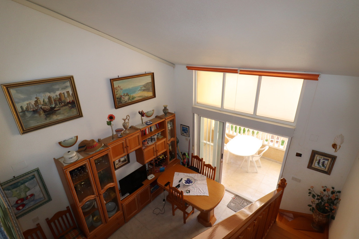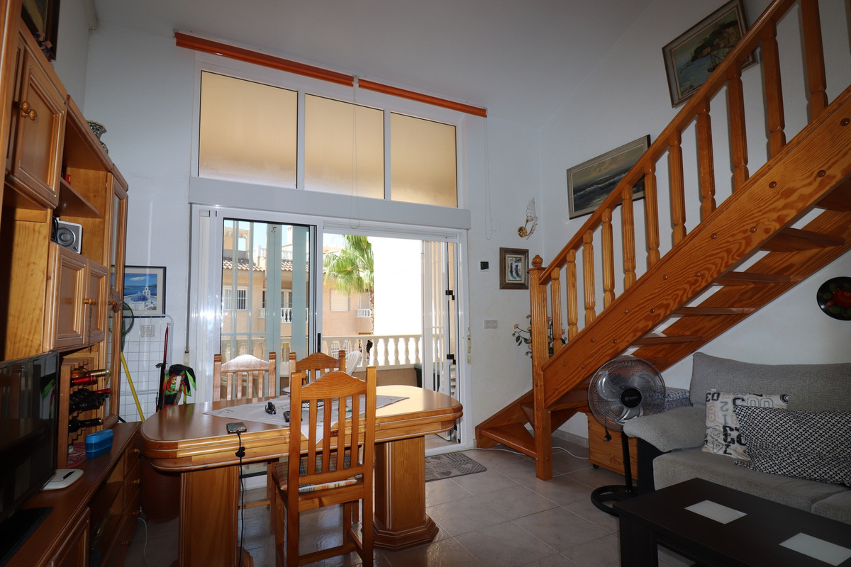 Direct from owner this lovely 3 bed, 2bath penthouse 150 mtr from the beautiful Blue Flag Beaches of Guardanar del Segura. This apartment is ideal for a holiday home. When you enter the apartment trough the hallway you have the 1rst bedroom and bathroom with washing machine. The open plan kitchen looks into the living and balcony. Upstairs you have another 2 beds and a bath. This complex offers you a lot, a large community pool, a tennis court and a playground for the little ones. You can park free of charge in the street and in whole Guardamar. Shops, restaurant a few min away.