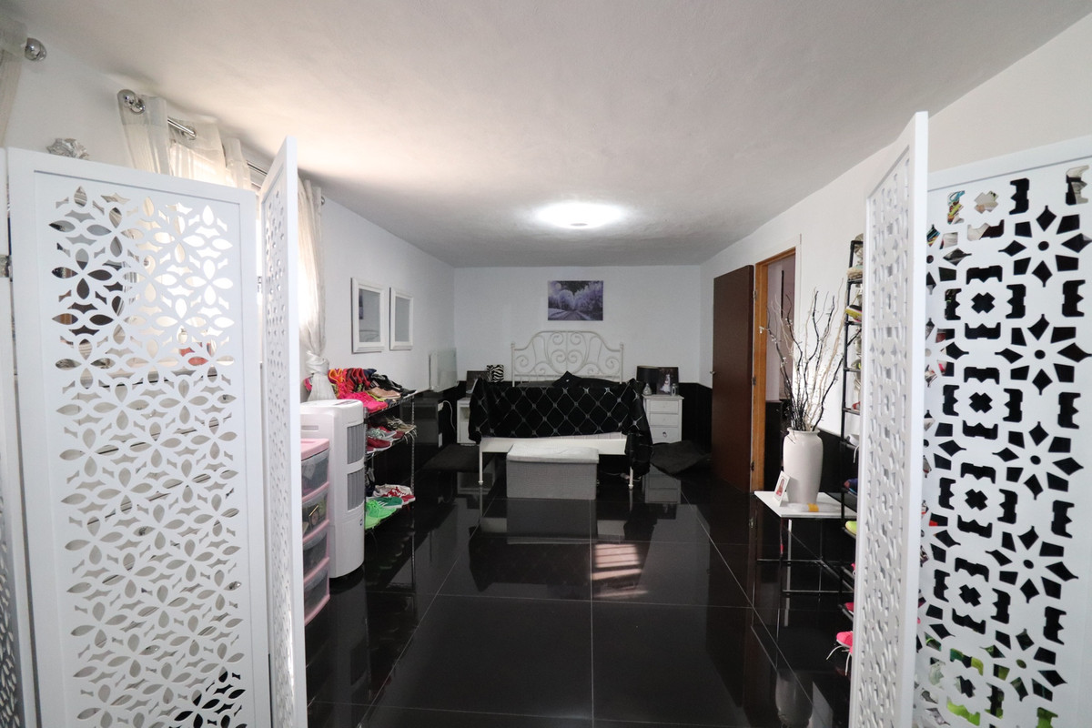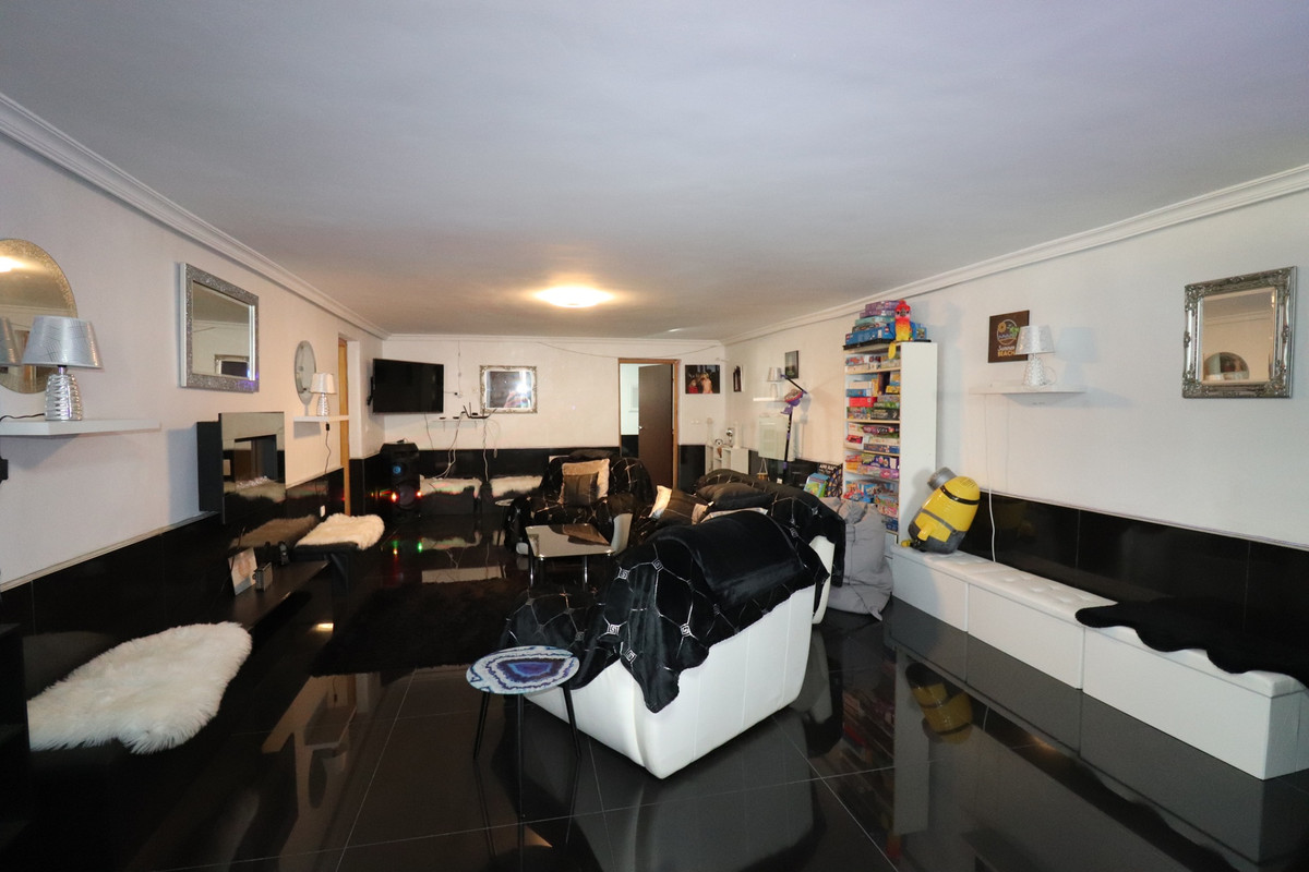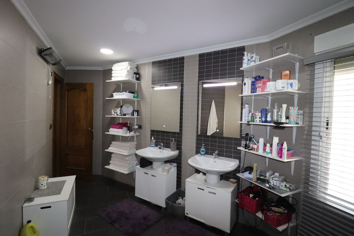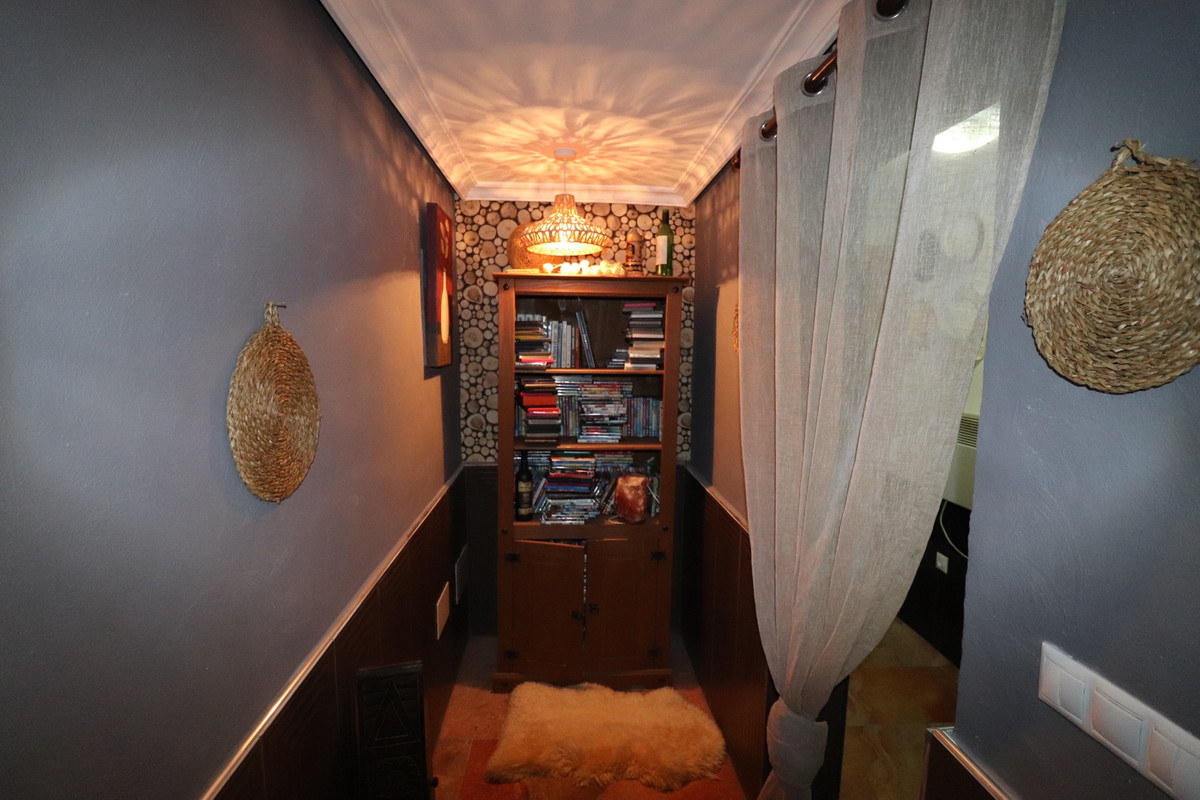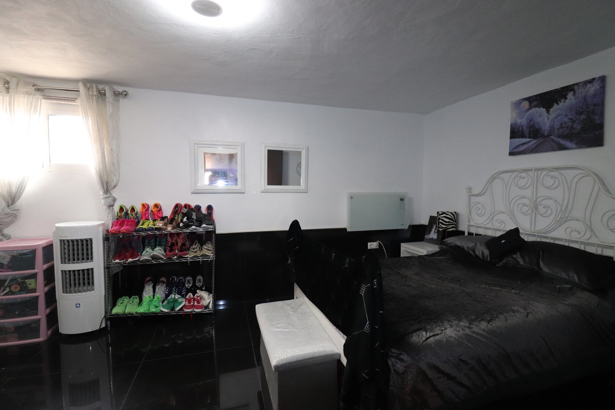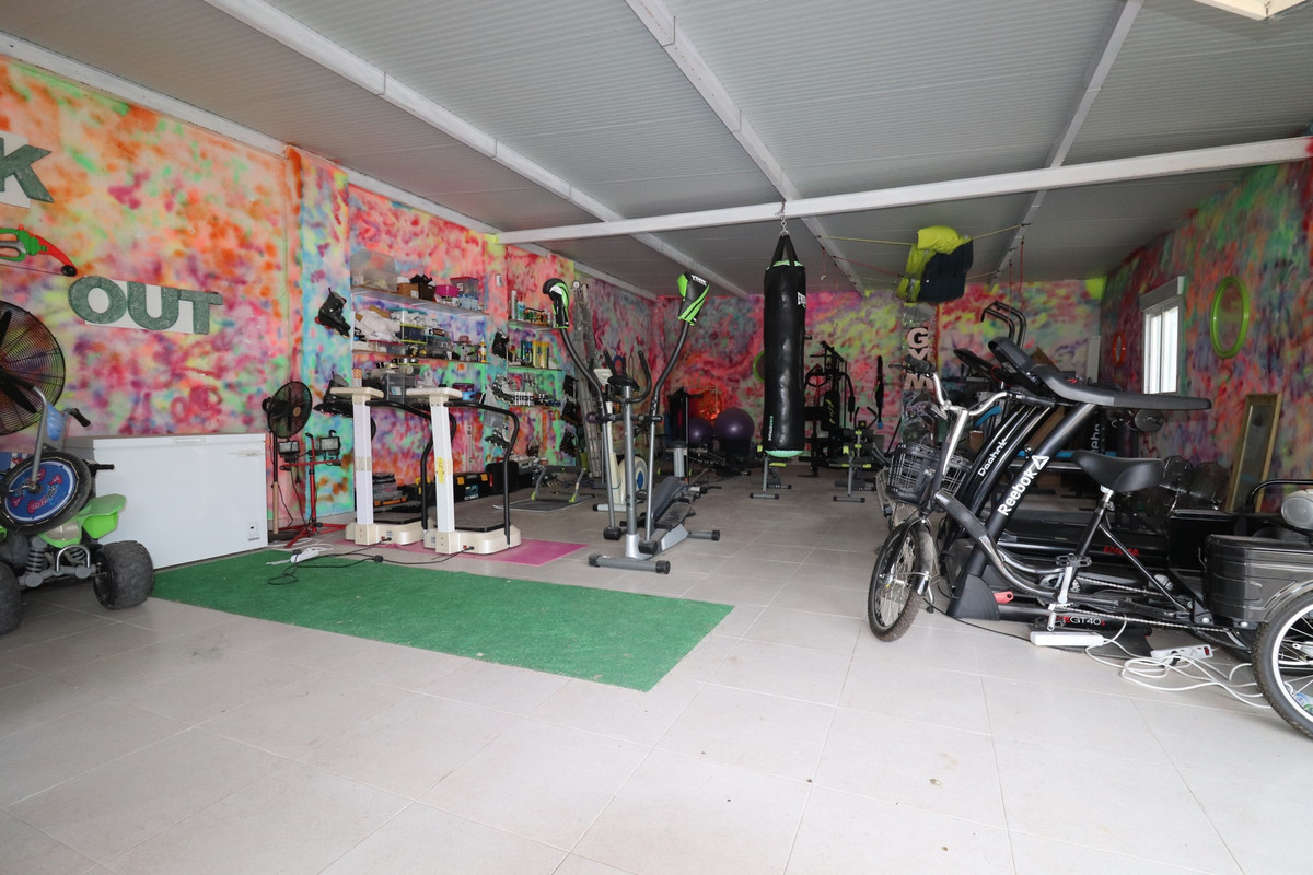 The ground floor has, just like above, 3 bedrooms and a 4th is being used as a walking closet/shoe area. A very spacious living room with direct acces to a kitchen that currently functions as a laundry room and a bathroom with a walk-in shower. Next to the living room is a separate functional room where a bar has been realized with a very spacious lounge area. This property is certainly suitable for a large family, 2 families or to be used as a commercial rental. There you can reach the lower floor.