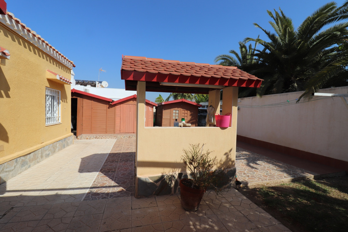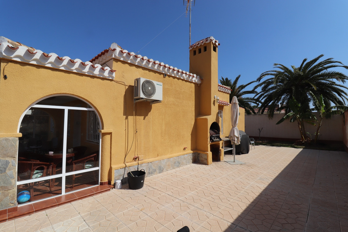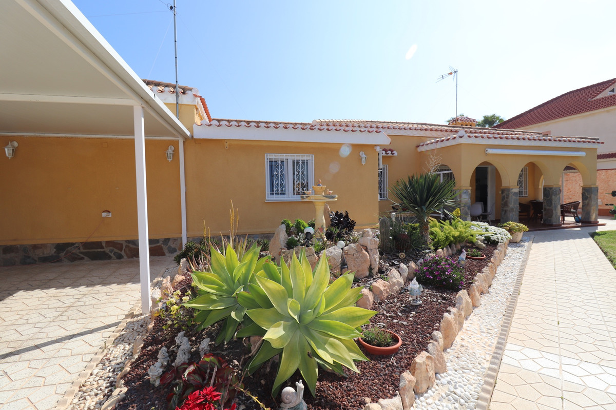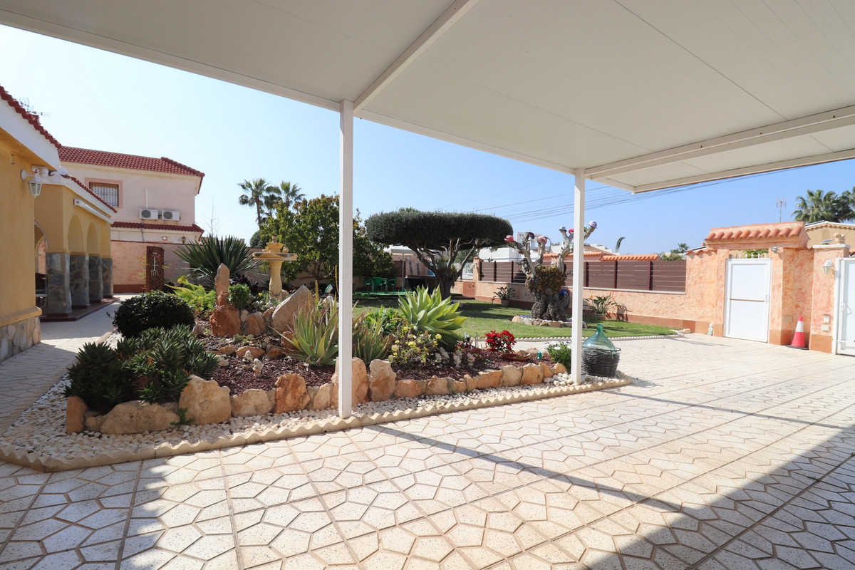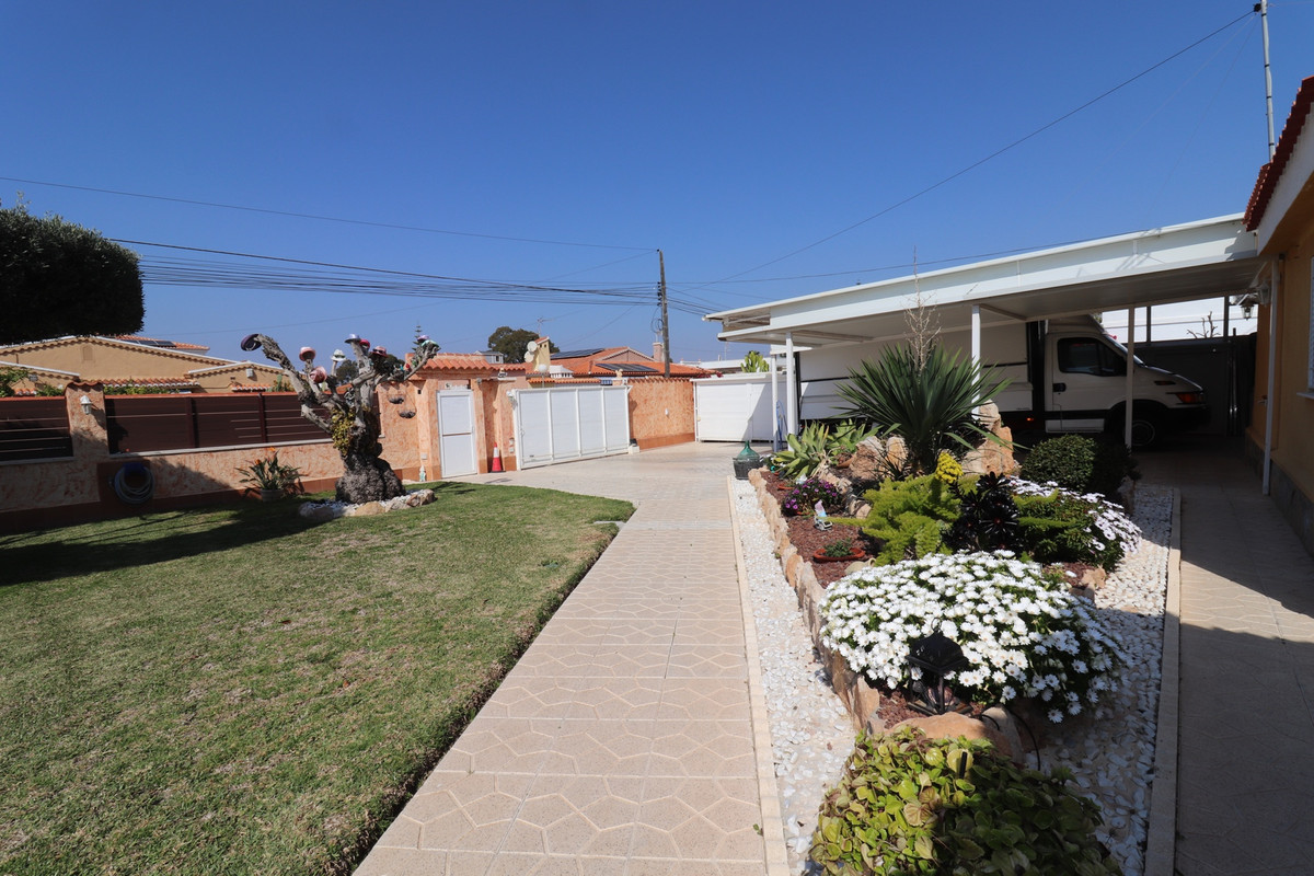 Total renovated villa 127 m2 on a huge plot of 800m2 in Torrevieja area Torretas Florida. This property is ready to move in. It has 3 double bedrooms, 2 bathrooms,a good size living and an open plan kitchen. The owner renovated it to a modern concept.It has privat parking with a carport for a caravan, camper and one for a car and lots of storage space. Also there is space enough to put a large pool as the plot is 800m2. Outside is a covered laundry area / outside kitchen.  It is main connected to electric and water, has zircon. fitted wardrobes, close to  shopping centres, medical centres, schools, the coast, parks, supermarket and restaurants bars.