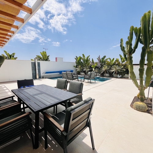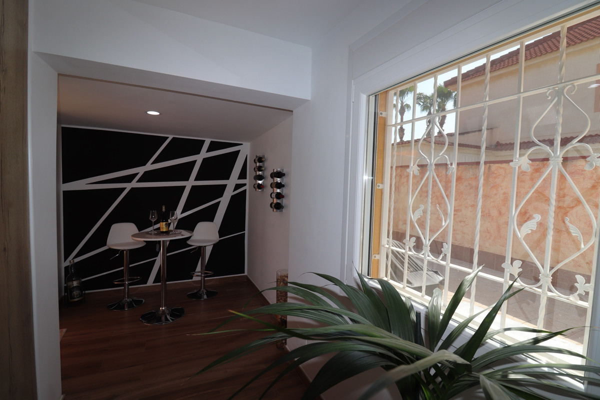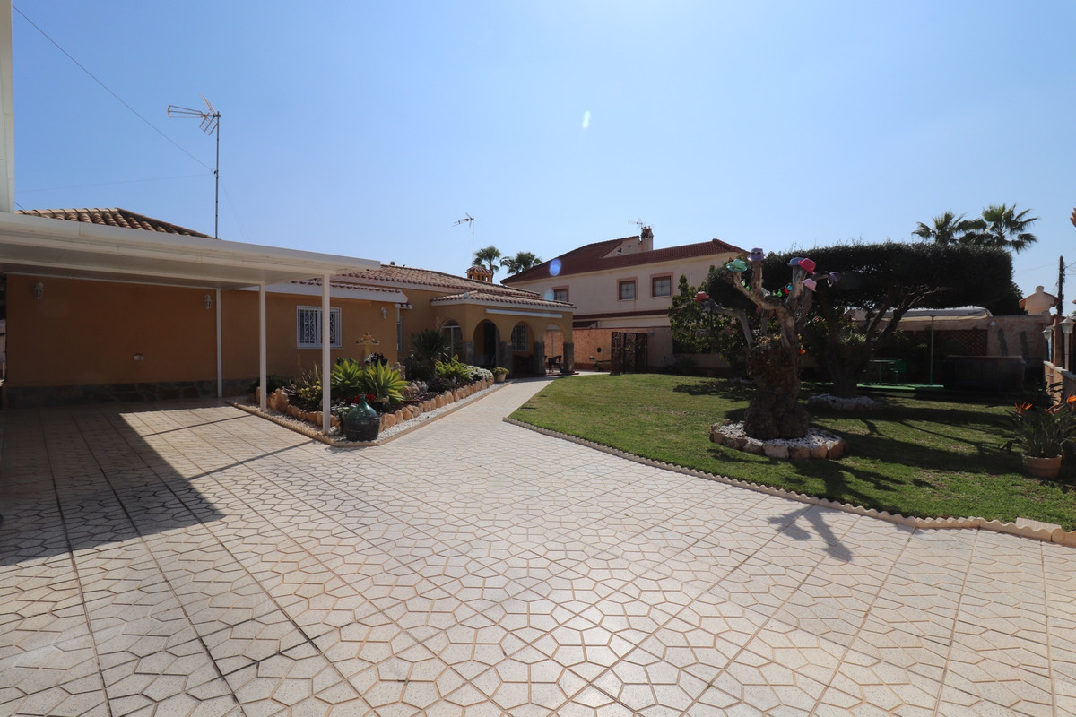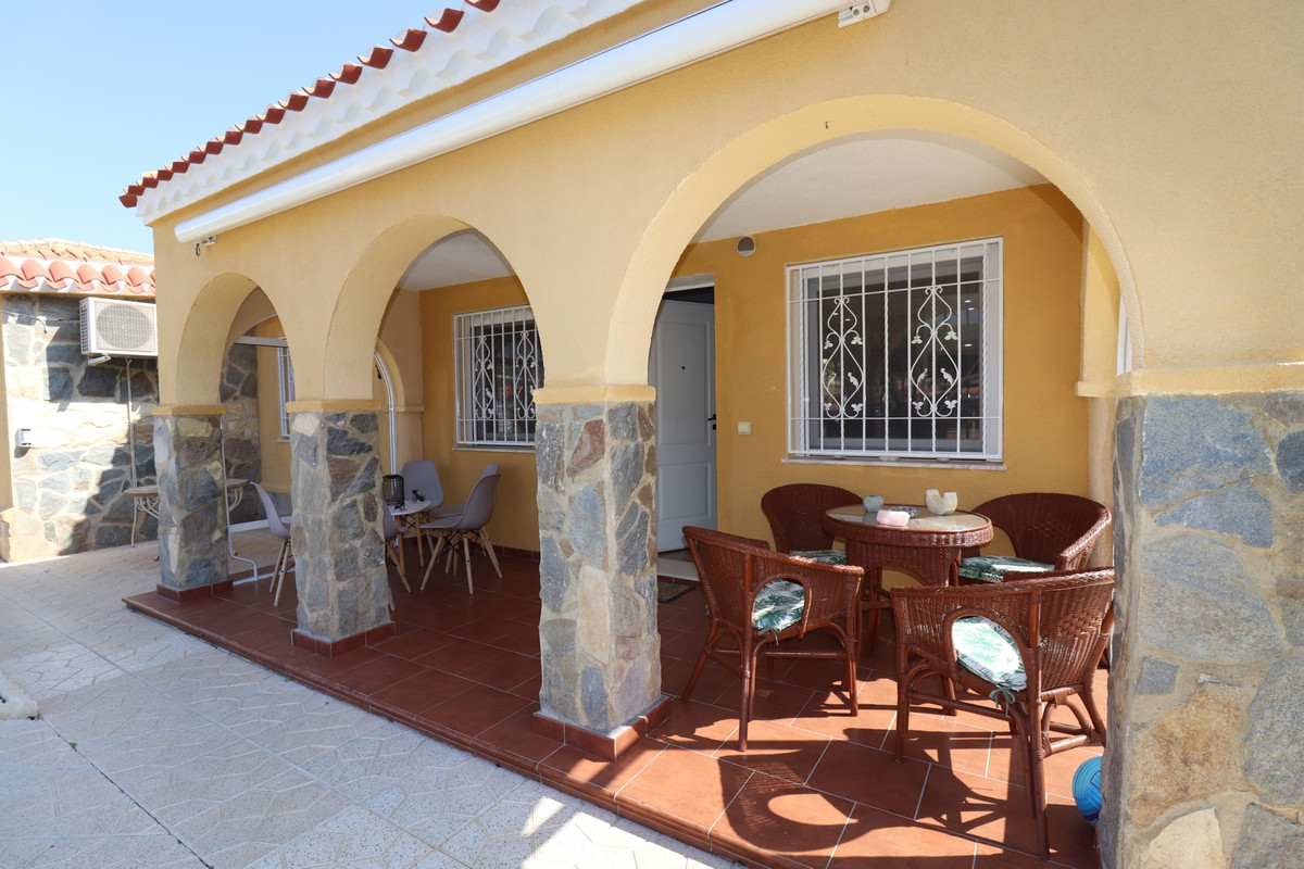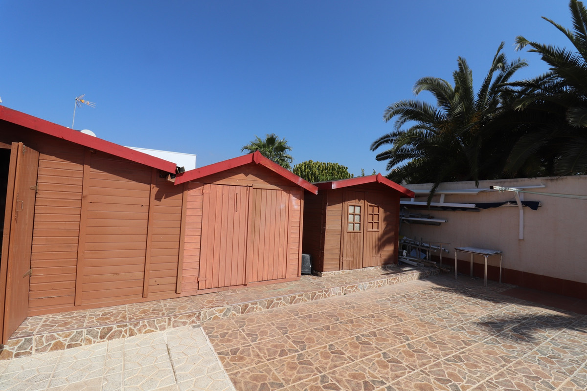 Total renovated villa 127 m2 on a huge plot of 800m2 in Torrevieja area Torretas Florida. This property is ready to move in. It has 3 double bedrooms, 2 bathrooms,a good size living and an open plan kitchen. The owner renovated it to a modern concept.It has privat parking with a carport for a caravan, camper and one for a car and lots of storage space. Also there is space enough to put a large pool as the plot is 800m2. Outside is a covered laundry area / outside kitchen.  It is main connected to electric and water, has zircon. fitted wardrobes, close to  shopping centres, medical centres, schools, the coast, parks, supermarket and restaurants bars.
