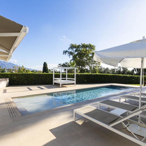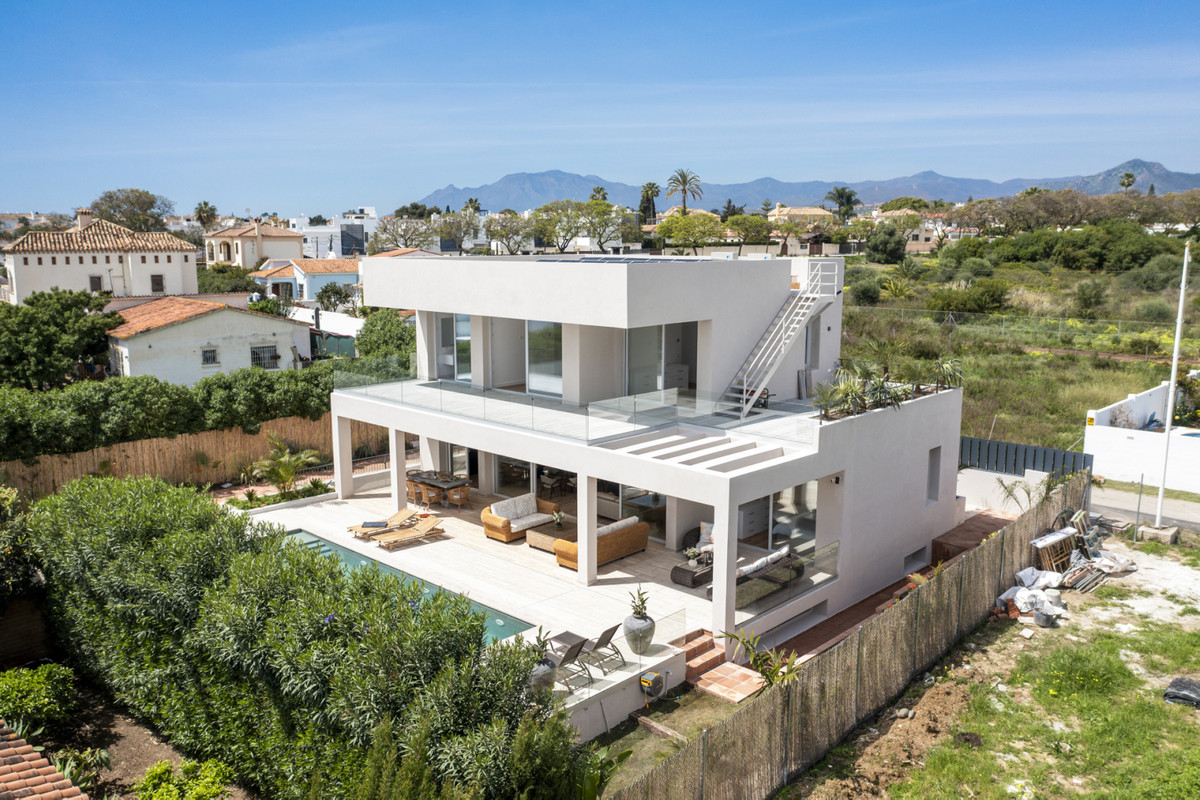 New built modern south facing villa, just 250m from the Mediterranean Sea near San Pedro town. The property is built over three floors plus rooftop terrace with panoramic views to mountains and the sea.