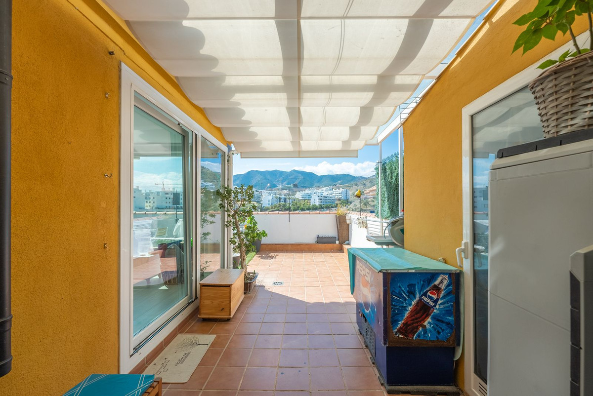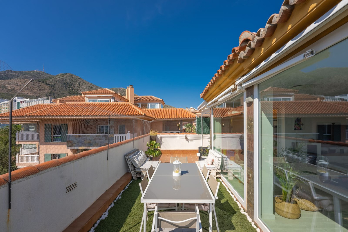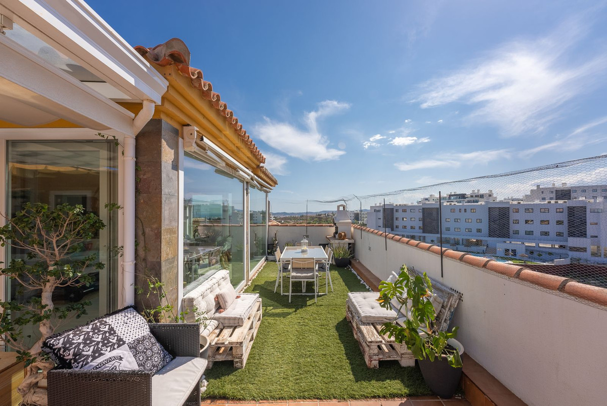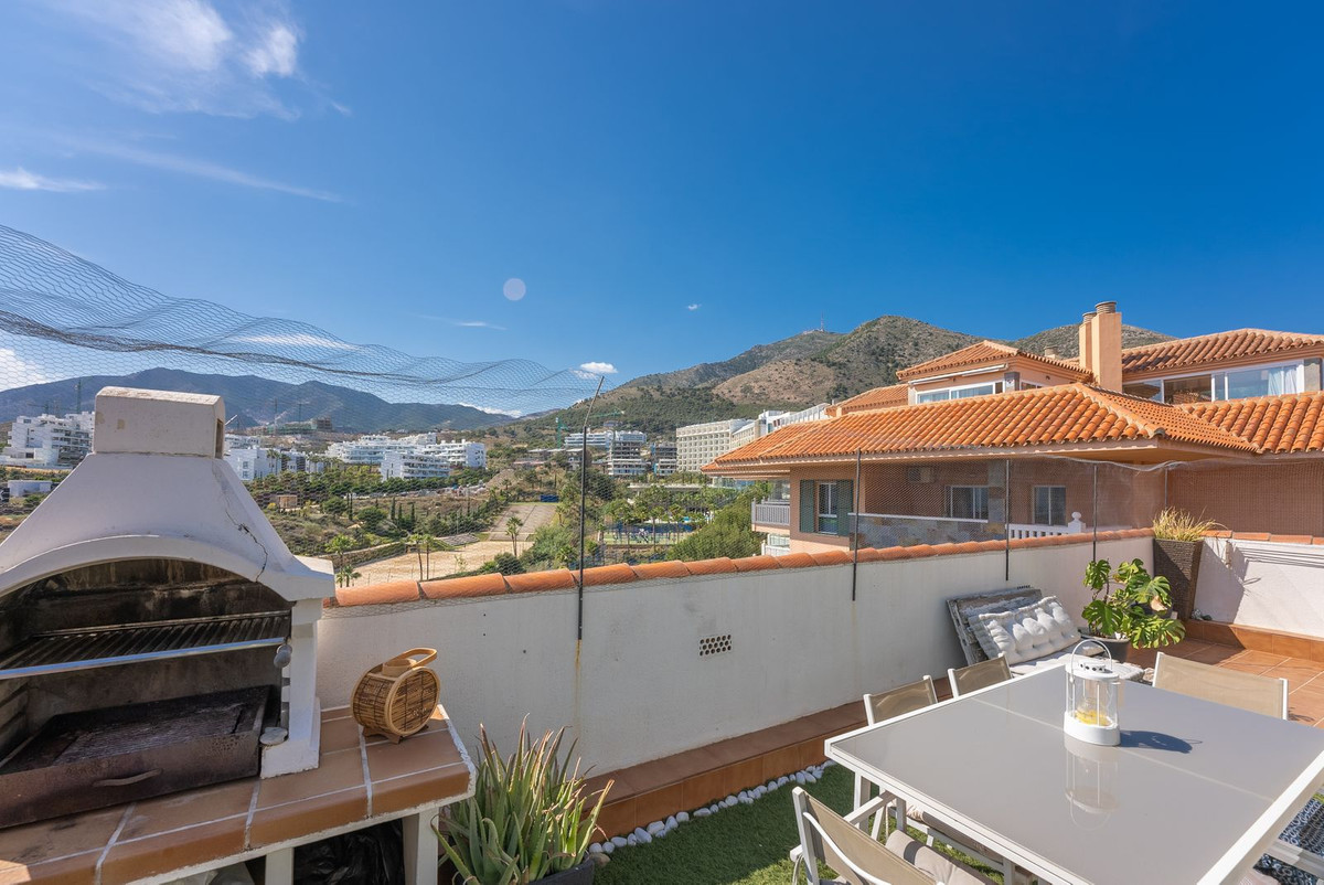 Refurbished modern penthouse, south-south/west orientation, located in the exclusive urbanization Reserva del Higuerón. Consits of hall entrance, 3 bedrooms and 2 bathrooms, wooden floors throughtout all the apartment, spacious living-dining room with large glass windows, open plan kitchen fully furnished and equipped with electricial appliances. All bedrooms with fitted wardrobes and access to the terrace. Main bedroom with ensuite bathroom and walk-in closet. 136m2 of terrace with panaromic views of the Mediterranean sea and Fuengirola Bay. Includes a parking space and storage room.