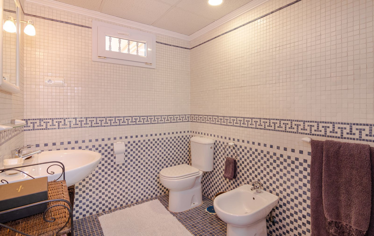 On the ground floor we have the basement area, which can be adapted for a games room, cinema, gym, whatever suits you best with more than 80 square meters and access to the garden, 3 bedrooms, one of them with an en-suite bathroom and another bathroom to share between both rooms. From this floor we have direct access to the Sauna area with a complete bathroom for the pool area.
