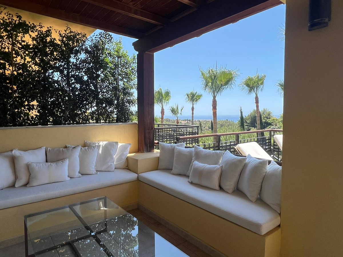 Ground Floor Apartment for sale in Condado de Sierra Blanca, Marbella with 3 bedrooms, 2 bathrooms and 1 toilet. Regarding property dimensions, it has 250 m² built, 350 m² plot, 250 m² interior and 100 m² terrace. Has the following facilities amenities near, air conditioning, fireplace, guest toilet, private terrace, sea view, covered terrace, electric blinds, fitted wardrobes, gated community, panoramic view, close to sea / beach, close to golf, balcony, handicap accessible, excellent condition, close to shops and close to schools.