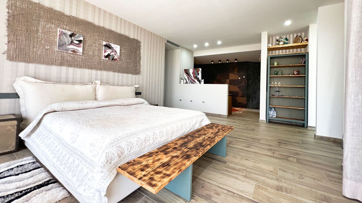 The villa has three spacious bedrooms, each with its own private bathroom, designed to guarantee comfort and style. In addition, there is the possibility of transforming an additional space into a fourth bedroom, adapting the property to your specific needs. All bedrooms are equipped with built-in wardrobes and large bathrooms, ideal for customising the spaces according to your preferences.