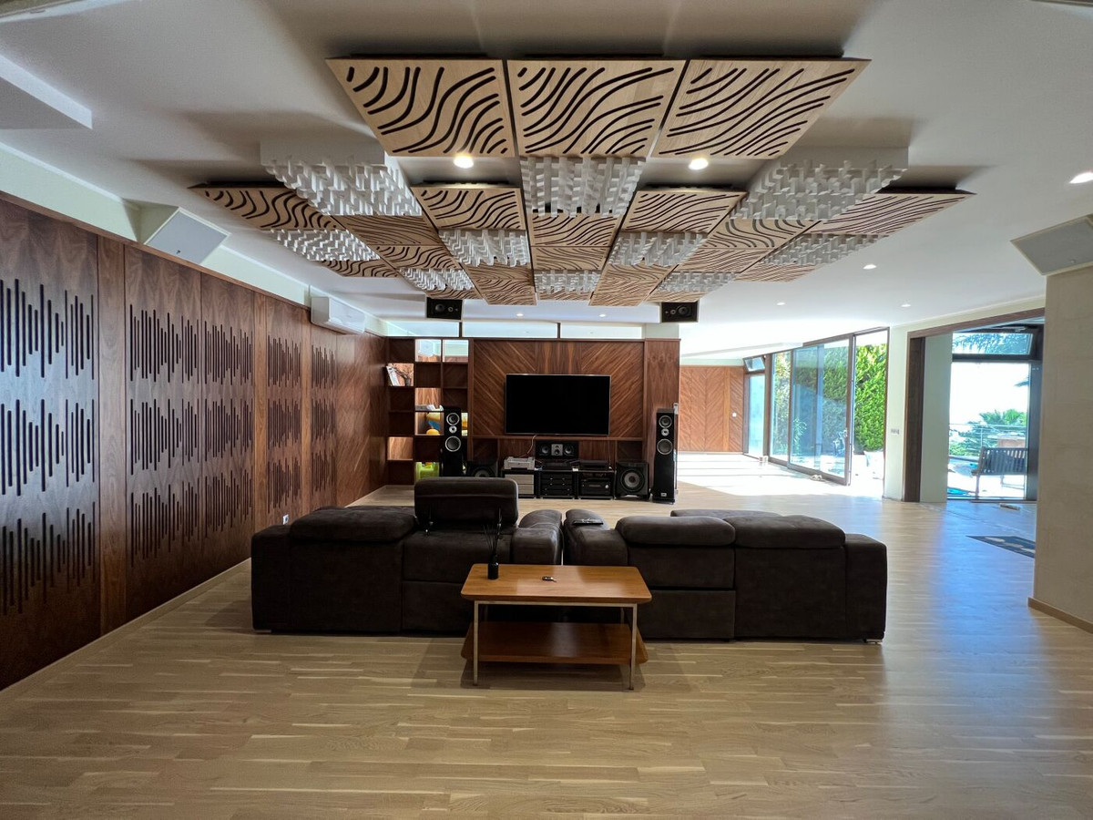 The distribution of the villa is as follows: The main floor comprises a very spacious living/dining area with a fireplace, TV, a half-open kitchen, one bedroom with an en-suite bathroom, guest toilet, and a storage room. The first floor comprises three bedrooms with en-suite bathrooms and a gallery. In the basement, we will find a SPA area with Hammam, Jacuzzi, shower, small kitchen, bathroom, and technical rooms. An area with special sound home cinema, hobby room, wine cellar, and one bedroom with an en-suite bathroom.