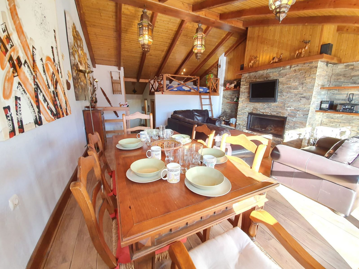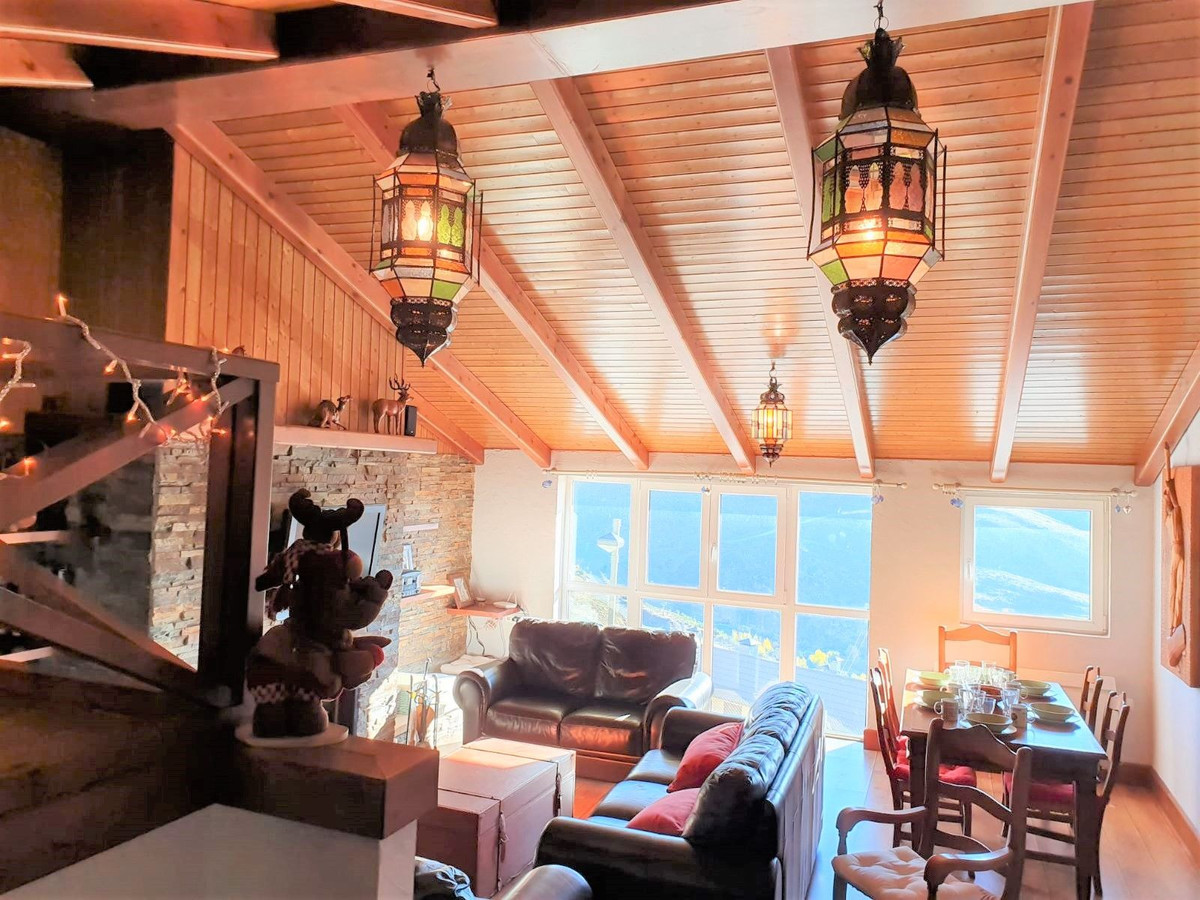 THE PROPERTY CONSISTS OF 130M2, DIVIDED INTO TWO FLOORS, HAS 4 BEDROOMS, 2 BATHROOMS, LIVING-DINING ROOM WITH FIREPLACE AND EXPECTACULAR VISITS TO THE MOUNTAIN, INDEPENDENT KITCHEN AND GARAGE INCLUDED IN THE PRICE.