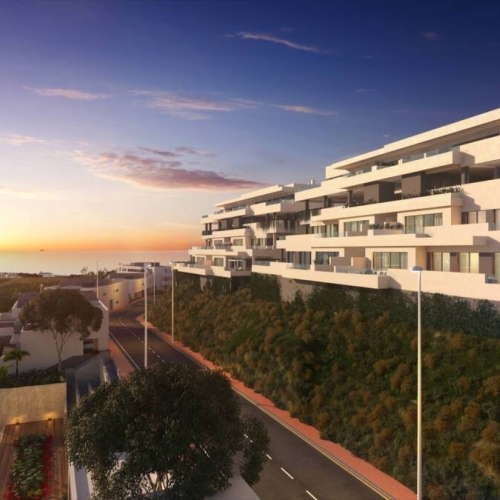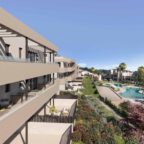 This development is a complex of 47 apartments with 1, 2 and 3 bedrooms. Each apartment has a garage and storage room.Gated community with swimming pool, gardens and children's playground. The design of this development succeeds in integrating the construction with its surroundings, taking full advantage of the topography of the plot to allow for breathtaking 360º views of the sea and the mountains.All the homes have equipped kitchens, large terraces and high quality features such as hot water by aerothermics and pre-installation for charging electric vehicles. Ground floor apartments with private garden.