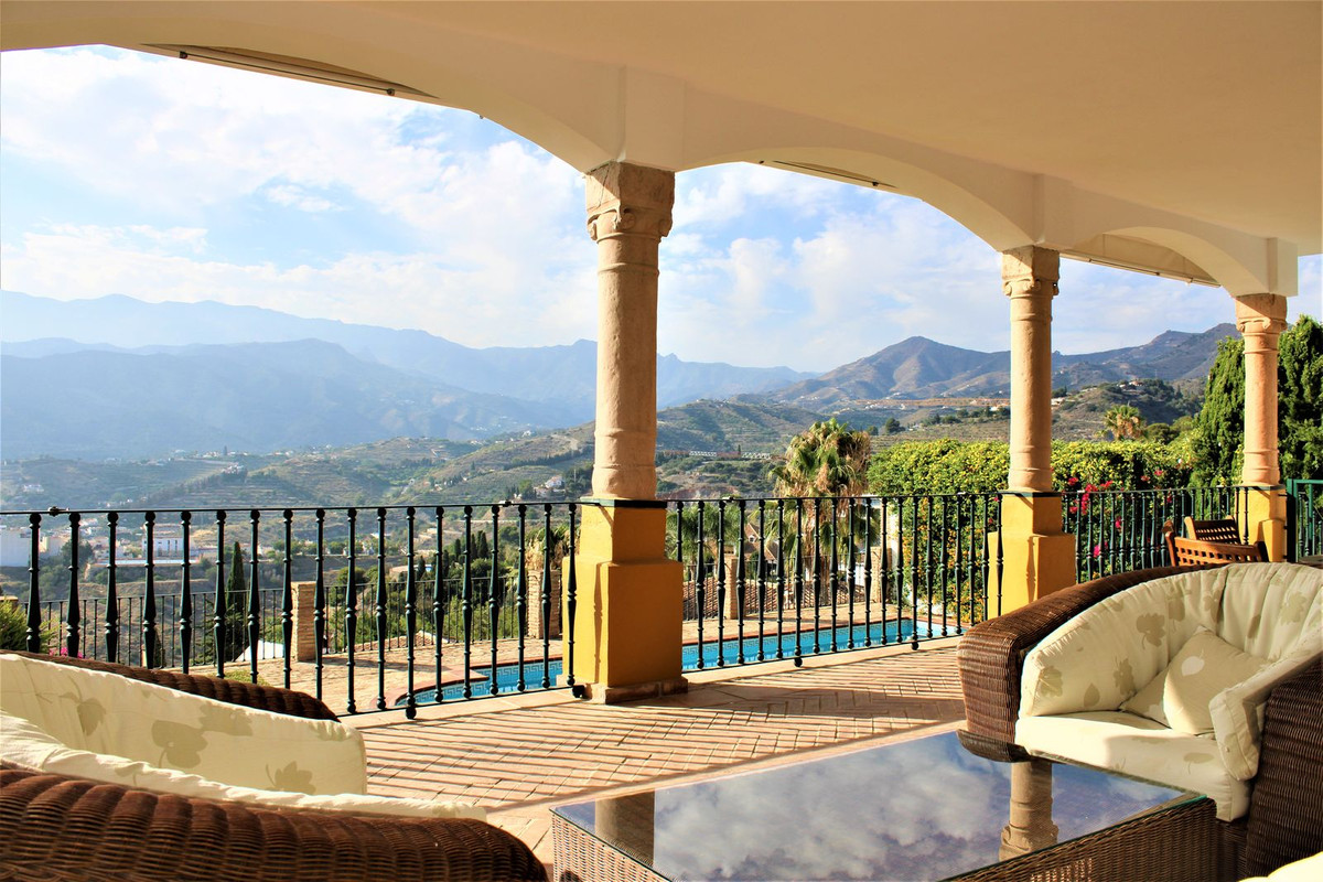 From the living room, you step out onto the house's gem, a large covered terrace with wonderful views of the Alboran Sea and the mountains of Cerro Gordo. The surrounding garden with its lush lawn and refreshing pool is the perfect place for sunbathing and cooling off on hot days, as well as for relaxing with family and friends in the evening. The terrace is beautifully decorated with authentic pillars.