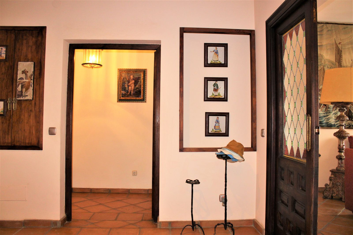 The entrance to the house impresses with a magnificent Sevillian courtyard, adorned with colorful potted plants, artisan tiles, and a beautifully paved terrace. A large solid wood door welcomes you into a spacious hall that connects the different parts of the house. To the right, you find a large fully equipped kitchen, which leads to a bright and spacious living room.